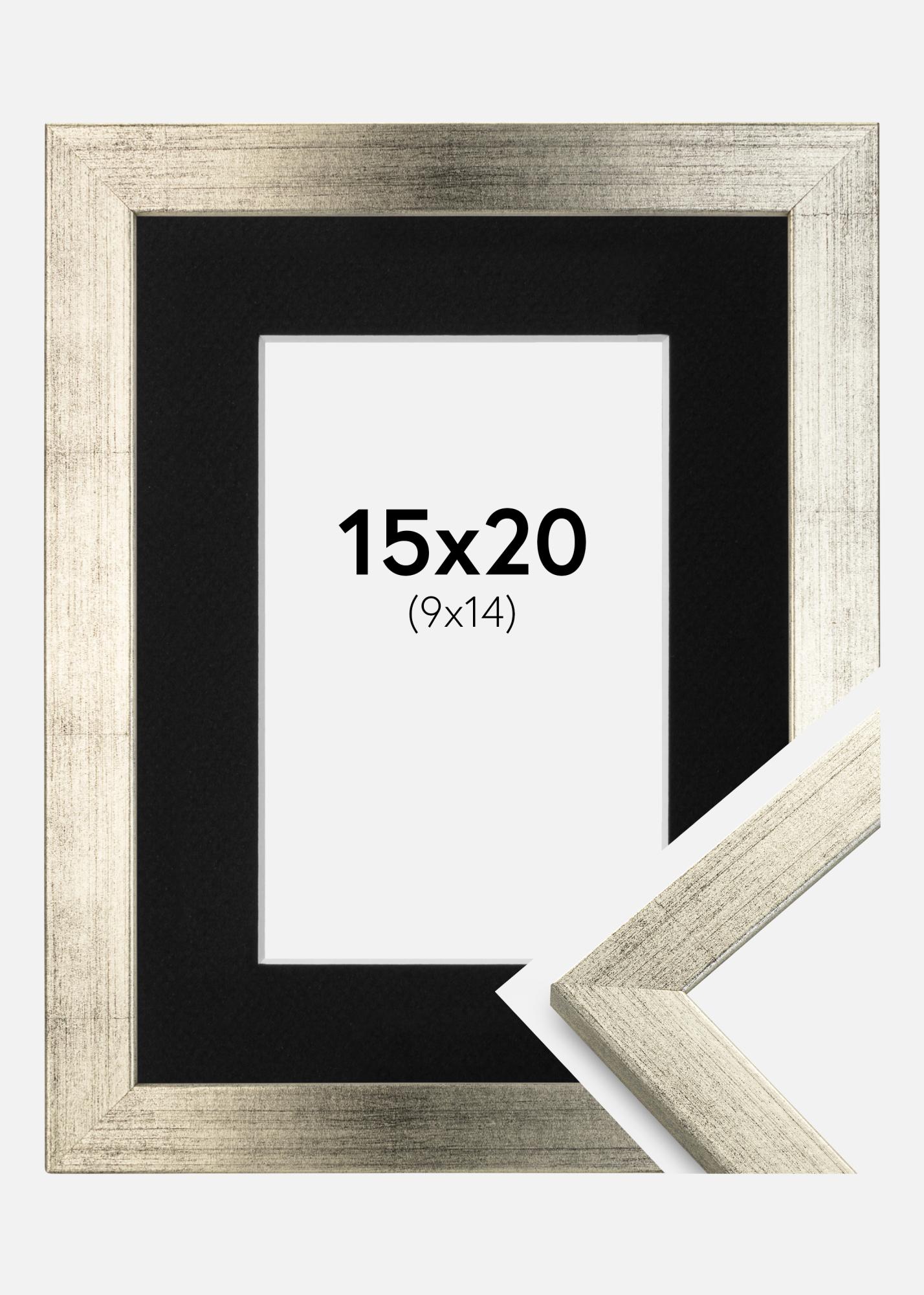 Πλαίσιο Κομψός Ασημί 15x20 cm - Πασπαρτού Μαύρος 10x15 cm