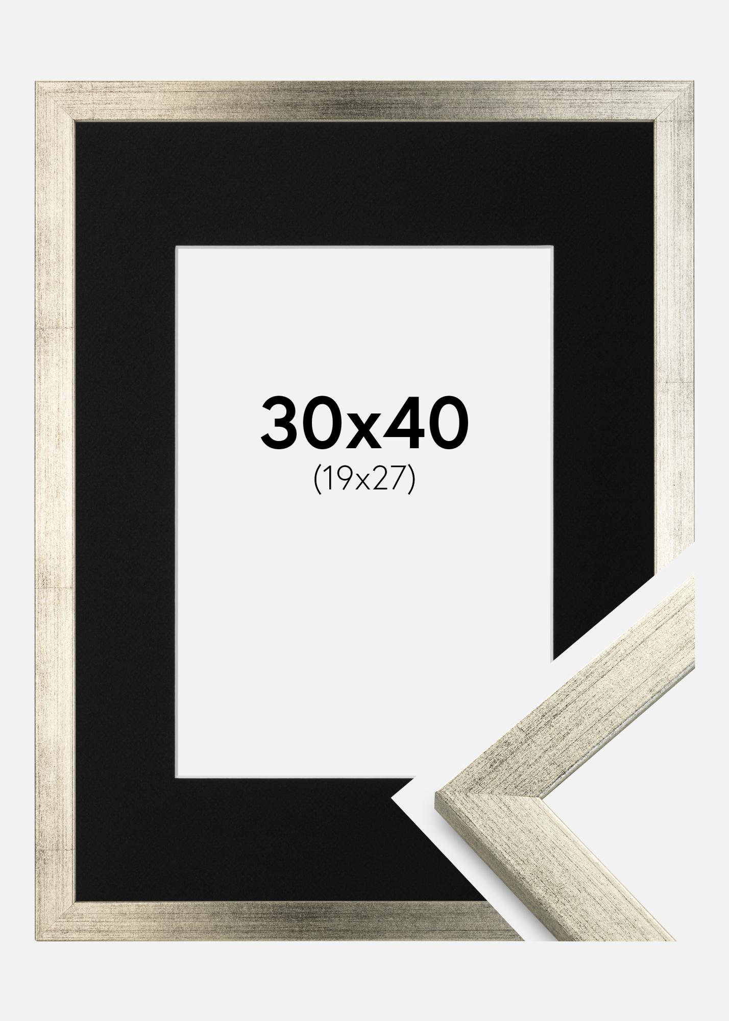 Πλαίσιο Κομψός Ασημί 30x40 cm - Πασπαρτού Μαύρος 20x28 cm