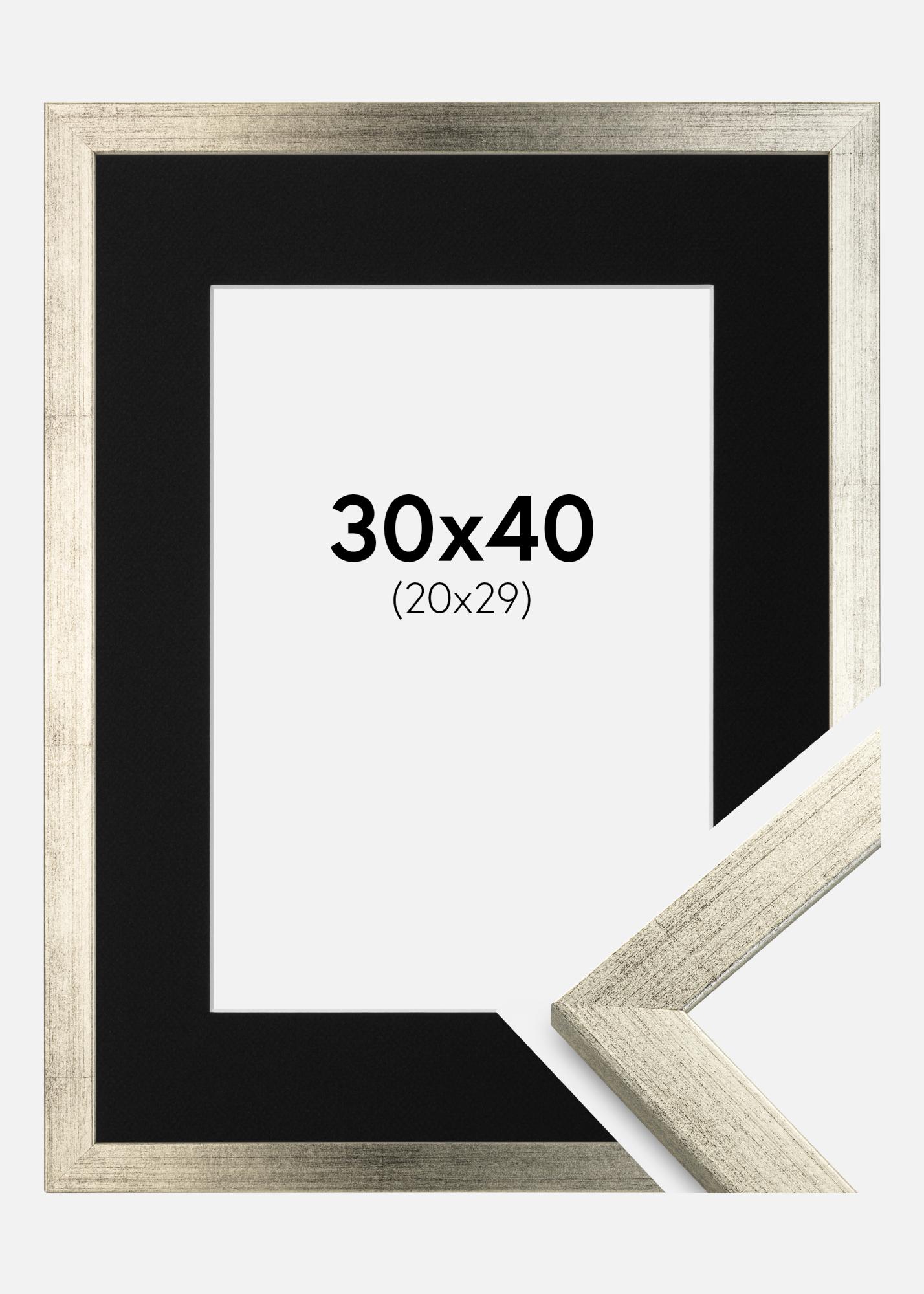 Πλαίσιο Κομψός Ασημί 30x40 cm - Πασπαρτού Μαύρος 21x30 cm
