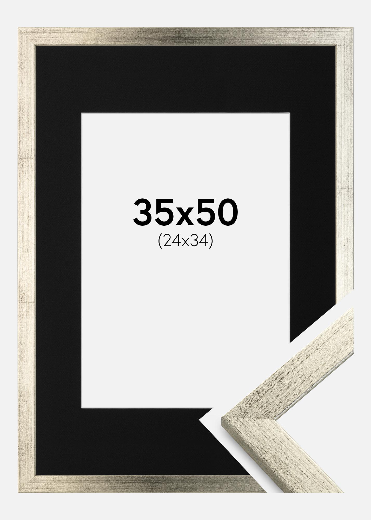 Πλαίσιο Κομψός Ασημί 35x50 cm - Πασπαρτού Μαύρος 25x35 cm