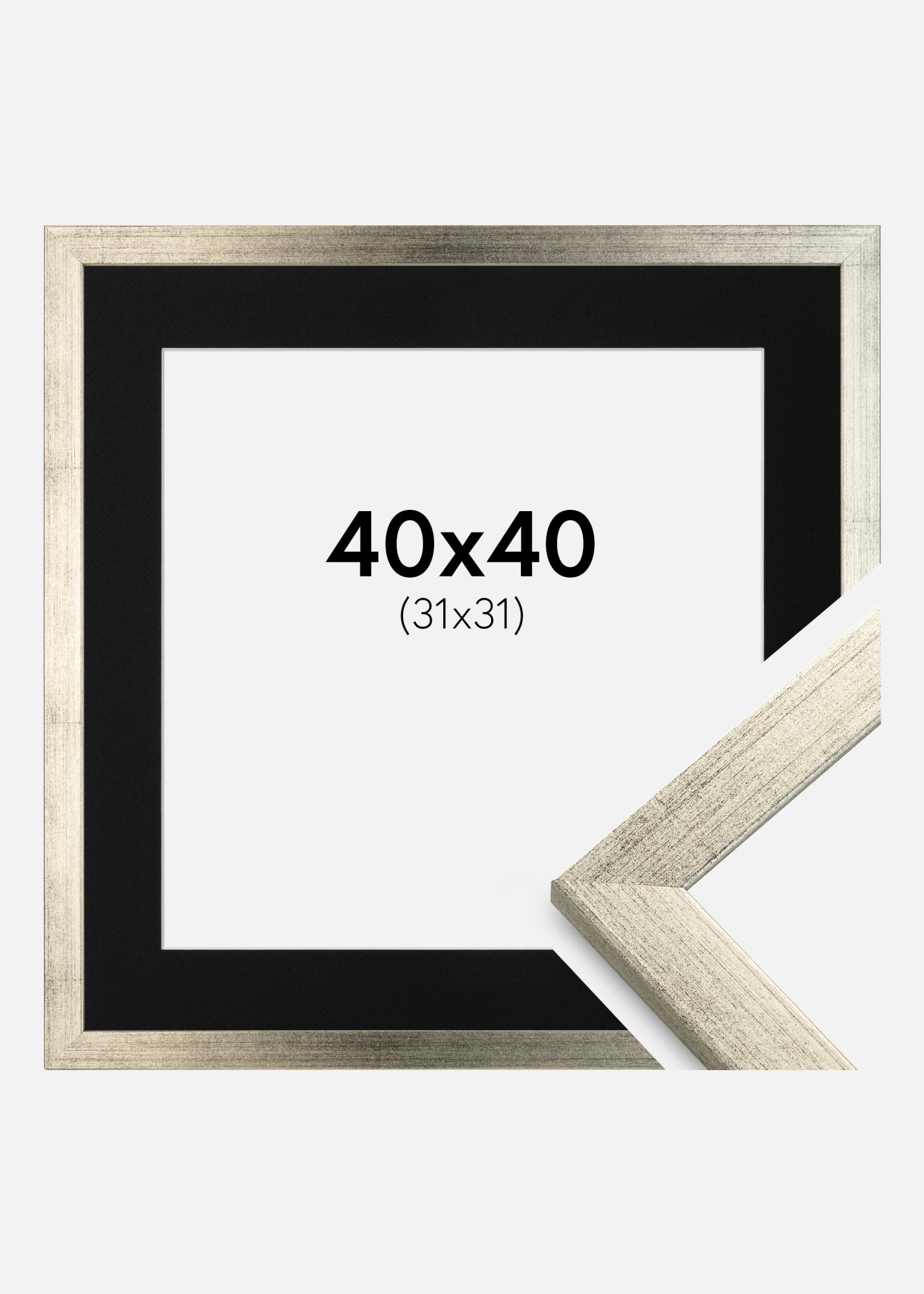 Πλαίσιο Κομψός Ασημί 40x40 cm - Πασπαρτού Μαύρος 32x32 cm