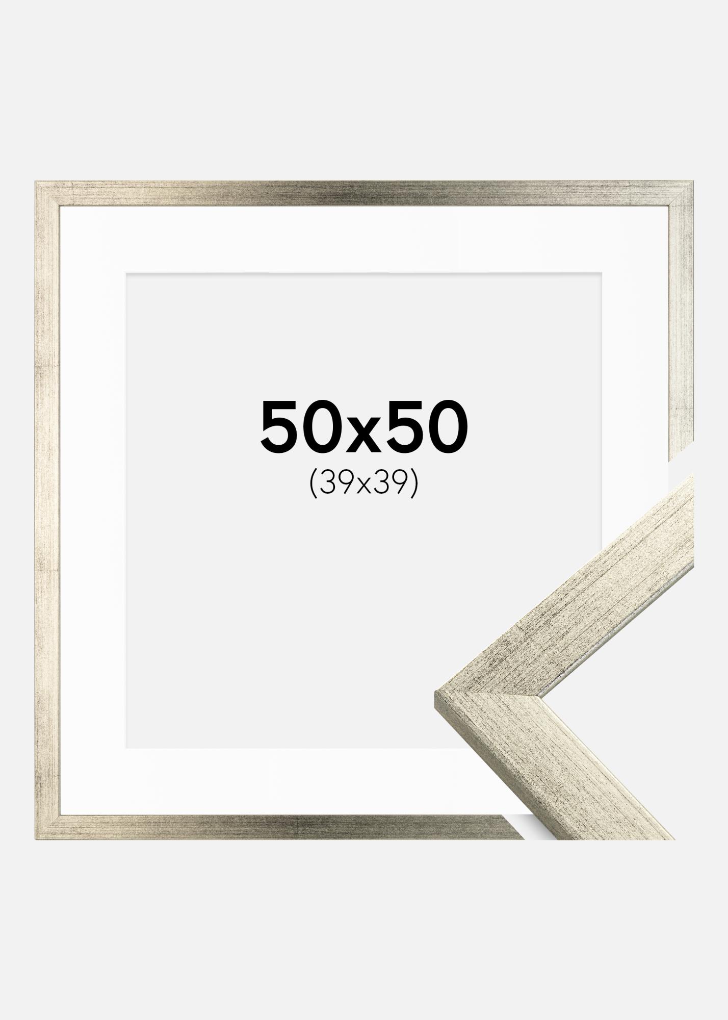 Πλαίσιο Κομψός Ασημί 50x50 cm - Πασπαρτού Λευκό 40x40 cm