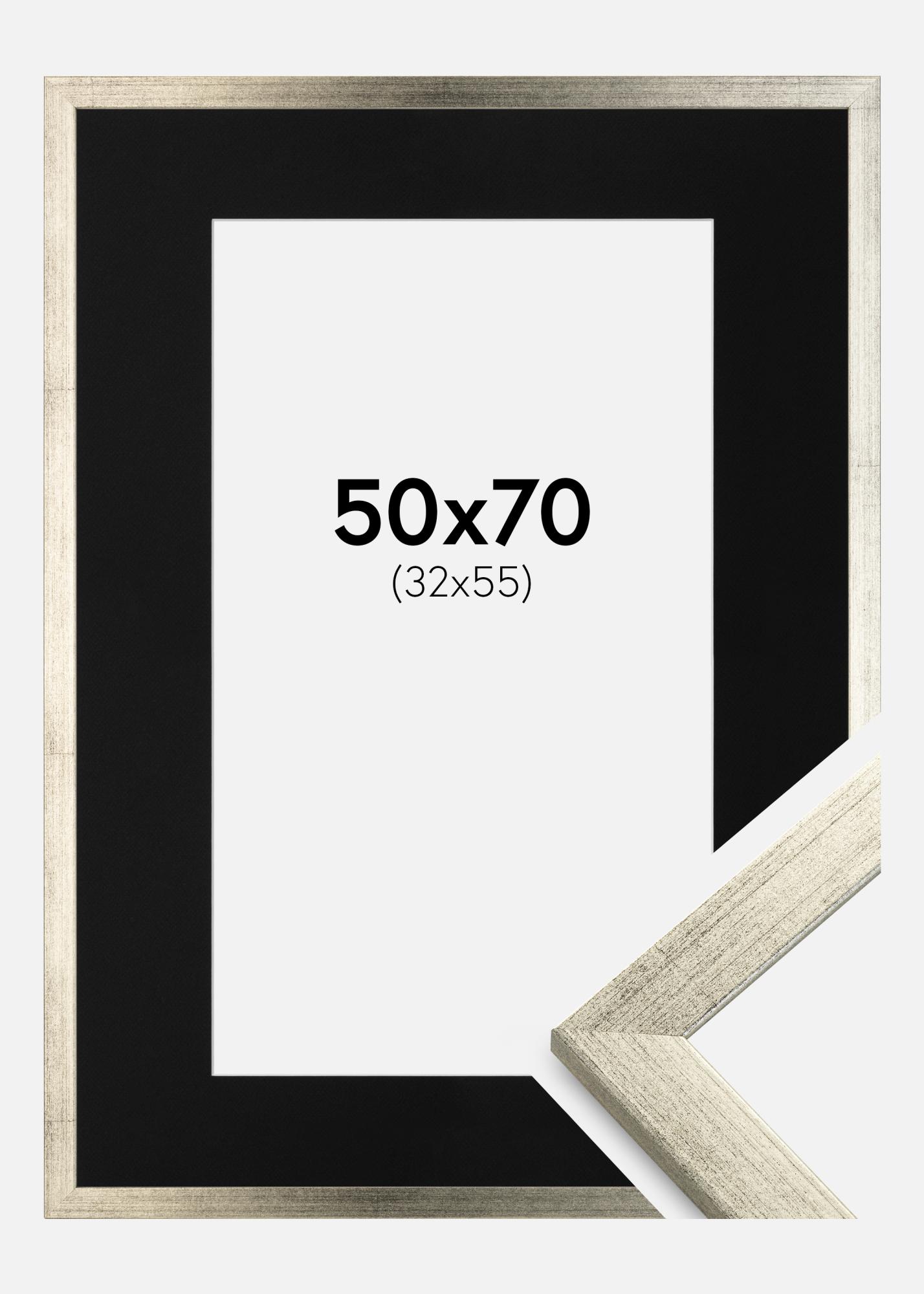 Πλαίσιο Κομψός Ασημί 50x70 cm - Πασπαρτού Μαύρος 33x56 cm