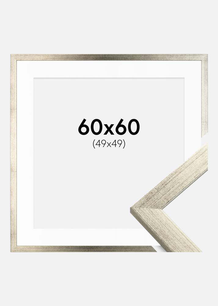 Πλαίσιο Κομψός Ασημί 60x60 cm - Πασπαρτού Λευκό 50x50 cm
