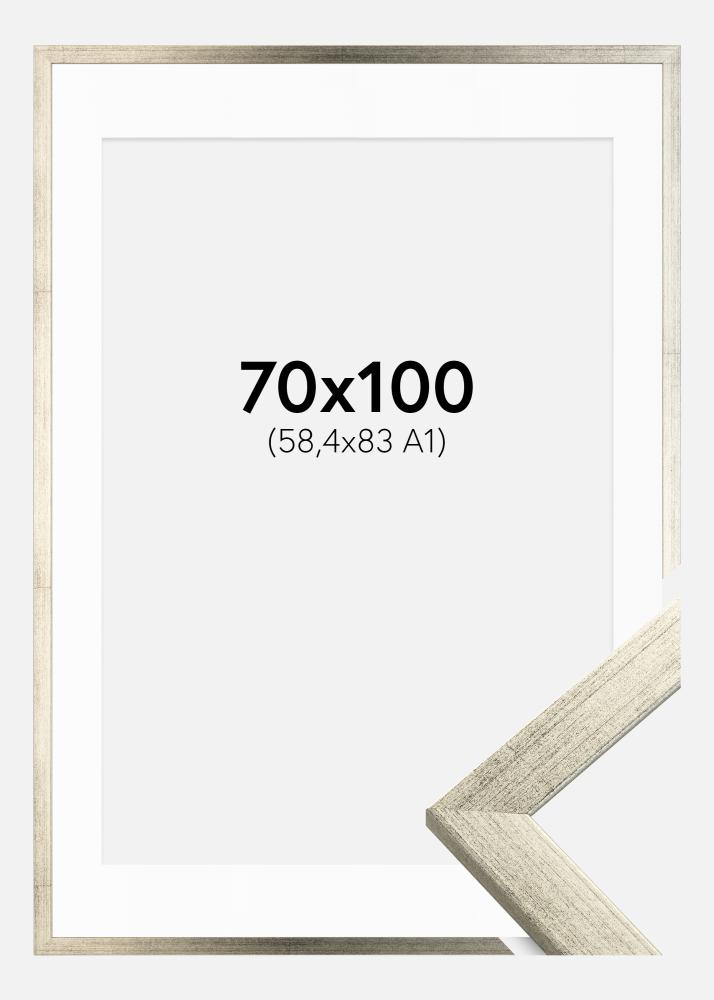 Πλαίσιο Κομψός Ασημί 70x100 cm - Πασπαρτού Λευκό 59,4x84 cm (A1)