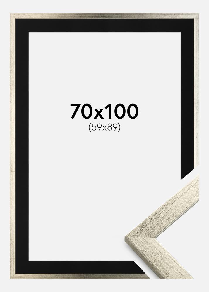 Πλαίσιο Κομψός Ασημί 70x100 cm - Πασπαρτού Μαύρος 60x90 cm
