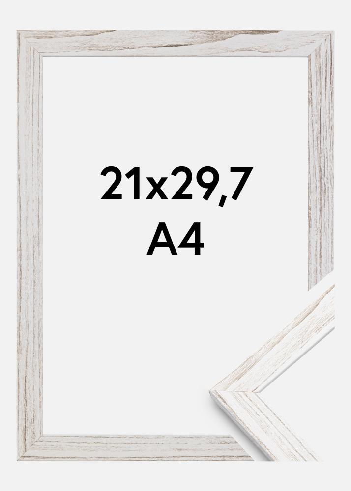 Αυτό είναι ένα κάδρο σε vintage design. Το κάδρο έχει λευκή απόχρωση με καφετί πινελιές που του δίνουν μια πιο ρουστίκ αίσθηση. Το προφίλ του κάδρου μετράει 20 mm πλάτος και 14 mm βάθος. Το κάδρο είναι κατασκευασμένο από πεύκο και έχει αληθινό γυαλί. Το Vintage White διατίθεται σε πολλές διαφορετικές διαστάσεις που μπορείτε να συνδυάσετε όμορφα μεταξύ τους. Αυτή η κορνίζα μετρά 21x29,7 cm και ταιριάζει σε εικόνες μεγέθους A4.