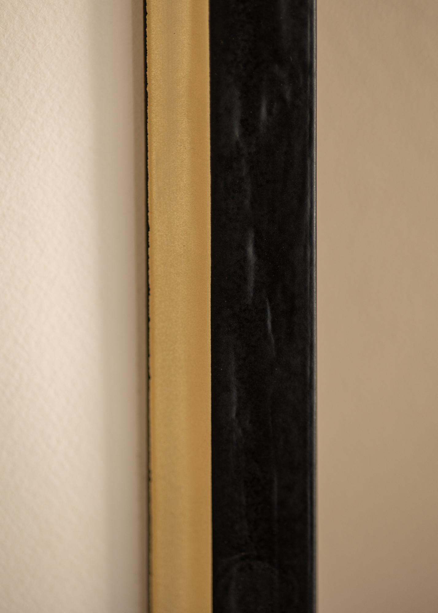 "Leonie" είναι μια ευρεία κορνίζα κατασκευασμένη στην Ιταλία που εγγυάται υψηλή ποιότητα και κομψό σχεδιασμό. Η κορνίζα έχει ένα κομψό προφίλ σε μαύρο με μια έντονα δομημένη επιφάνεια και ένα ευρύ ασημένιο περίγραμμα κοντά στο θέμα.