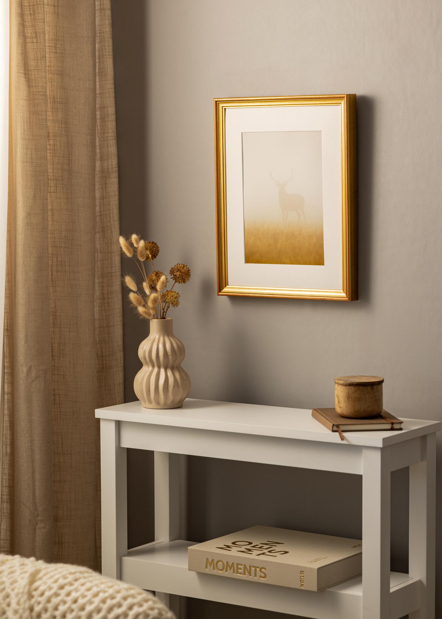 Η κορνίζα Loki Χρυσό είναι μια κομψή και κλασική κορνίζα φωτογραφιών που δίνει στα έργα τέχνης και φωτογραφίες σας ένα σοφιστικέ πλαίσιο. Με το εκλεπτυσμένο προφίλ της και τις διακριτικές πατίνες λεπτομέρειες, αυτή η χρυσή κορνίζα προσφέρει έναν διαχρονικό χαρακτήρα που ταιριάζει τέλεια τόσο σε μοντέρνα όσο και σε παραδοσιακά περιβάλλοντα. Η χρυσή επιφάνεια έχει ένα ελαφρώς αντικέ φινίρισμα με μικρές σκούρες λεπτομέρειες, το οποίο ενισχύει την κομψή εμφάνισή της και δημιουργεί μια αίσθηση βάθους και ιστορίας.
