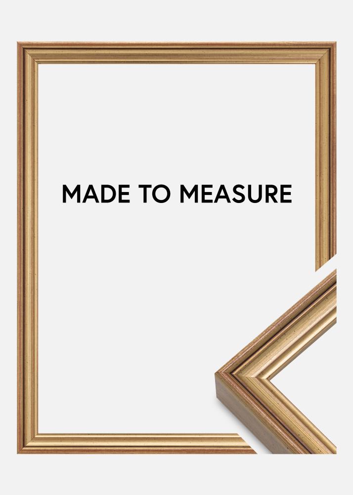 Ένα από τα μεγάλα πλεονεκτήματα της κορνίζας Loki Χρυσό είναι ότι μπορεί να παραγγελθεί κατά παραγγελία σύμφωνα με τις ειδικές σας ανάγκες. Αυτό σημαίνει ότι μπορείτε να αποκτήσετε μια κορνίζα που ταιριάζει τέλεια στο έργο τέχνης ή τη φωτογραφία σας, ανεξαρτήτως μεγέθους. Δεδομένου ότι η κορνίζα κατασκευάζεται στο δικό μας εργαστήριο, μπορούμε να εγγυηθούμε υψηλή ποιότητα και ακρίβεια σε κάθε λεπτομέρεια. Παρακαλώ σημειώστε ωστόσο ότι, καθώς το προϊόν είναι κατά παραγγελία, δεν είναι δυνατή η ακύρωση της αγοράς μετά την παραγγελία.