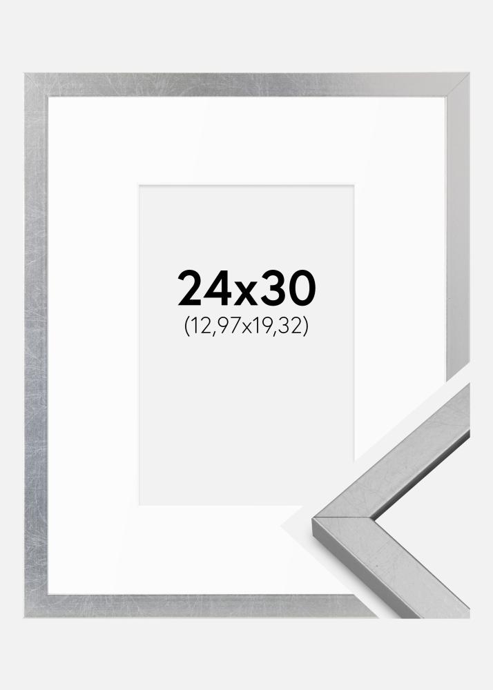 Πλαίσιο Minerva Ασήμι 24x30 cm - Πασπαρτού Λευκό 5,5x8 inches