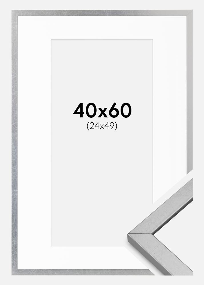 Πλαίσιο Minerva Ασήμι 40x60 cm - Πασπαρτού Λευκό 25x50 cm