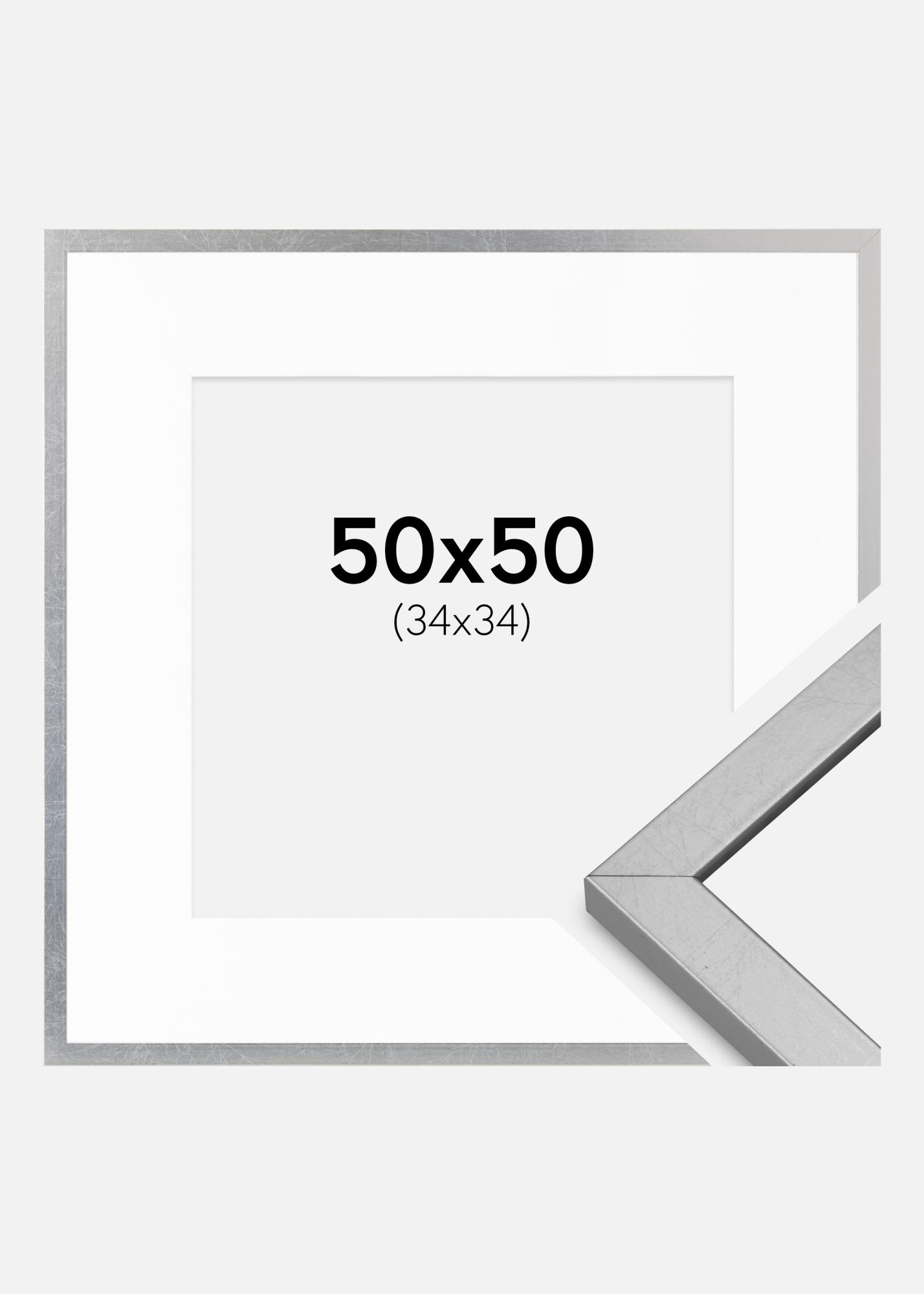 Πλαίσιο Minerva Ασήμι 50x50 cm - Πασπαρτού Λευκό 35x35 cm