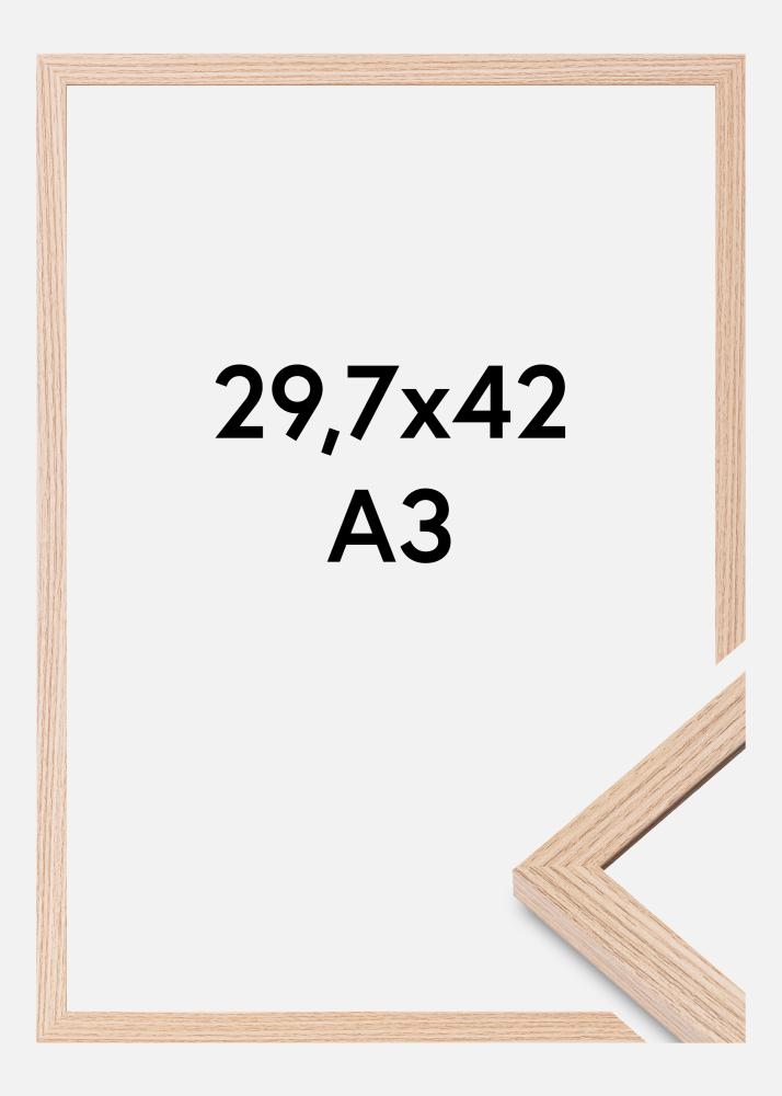 Δώστε στις αφίσες και τα έργα τέχνης σας την προσοχή που τους αξίζει με τη δική μας κορνίζα διαστάσεων 29,7x42 cm (A3) από δρυ με σχέδιο. Αυτή η κορνίζα συνδυάζει κομψό σχεδιασμό με λειτουργικότητα και είναι μια οικονομική επιλογή για να δημιουργήσετε ένα κομψό κολάζ τοίχου ή να αναδείξετε μεμονωμένα το αγαπημένο σας θέμα.