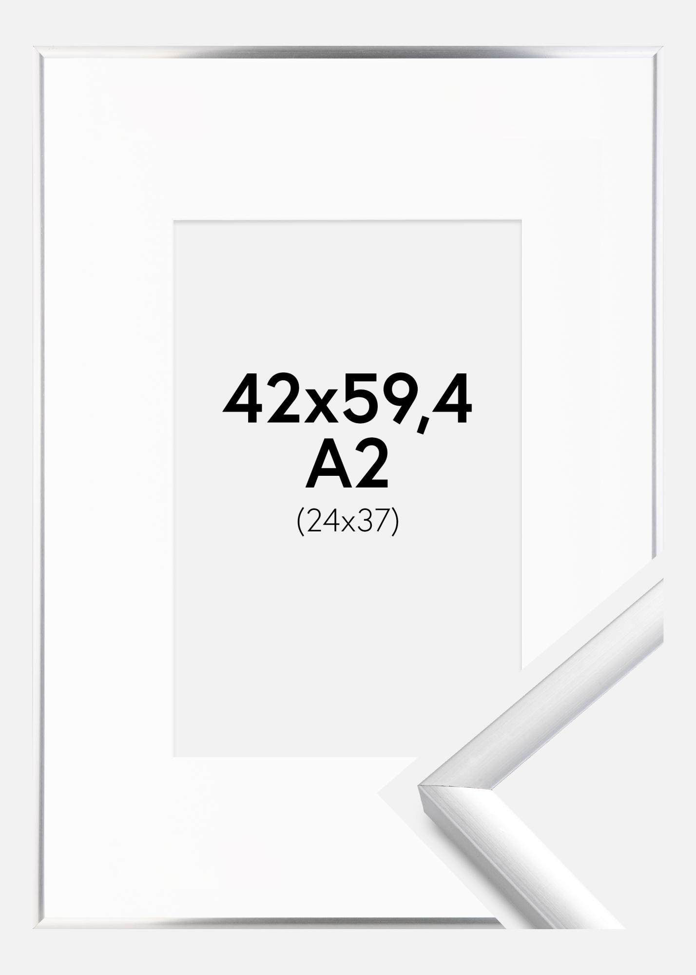 Μετατρέψτε την αγαπημένη σας φωτογραφία ή έργο τέχνης σε μια κομψή διακόσμηση τοίχου με την εκλεπτυσμένη ασημένια κορνίζα με πασπαρτού. Το λευκό πασπαρτού αναδεικνύει την εικόνα σας στο μέγεθος 25x38 cm και προσφέρει μια επαγγελματική εμφάνιση, ενώ η γυαλιστερή ασημένια κορνίζα, με πλάτος 9,8 mm, προσθέτει μια μοντέρνα πινελιά στη διακόσμησή σας.