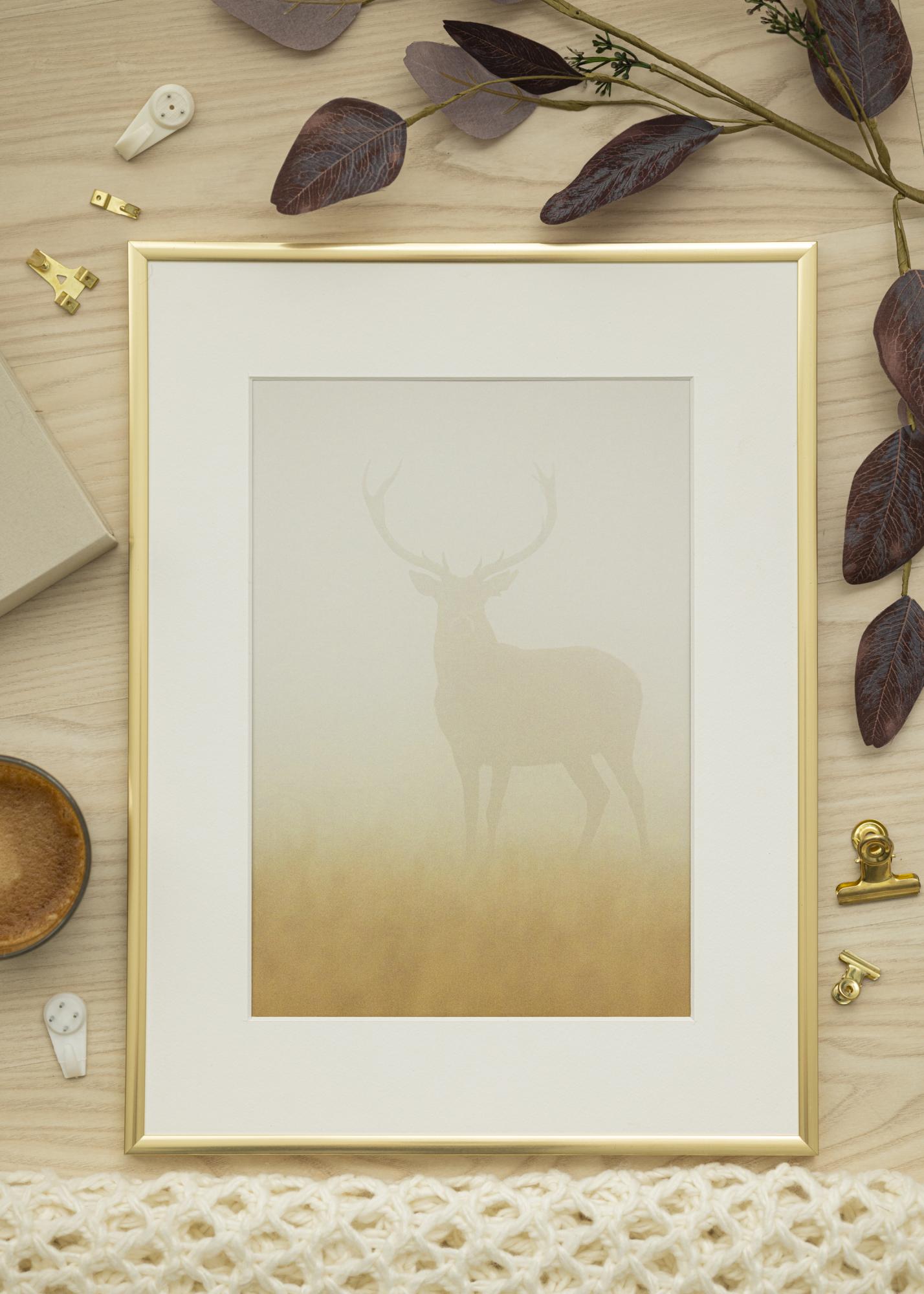 Μετατρέψτε τις αναμνήσεις σας σε έργα τέχνης με τη κομψή μας κορνίζα χρυσού χρώματος, πλήρης με ένα στυλάτο λευκό passepartout. Αυτή η κορνίζα είναι ιδανική για φωτογραφίες μεγέθους 50x75 εκ. και προσφέρει στις φωτογραφίες σας μια σοφιστικέ πλαισίωση που πραγματικά κεντρίζει το μάτι.