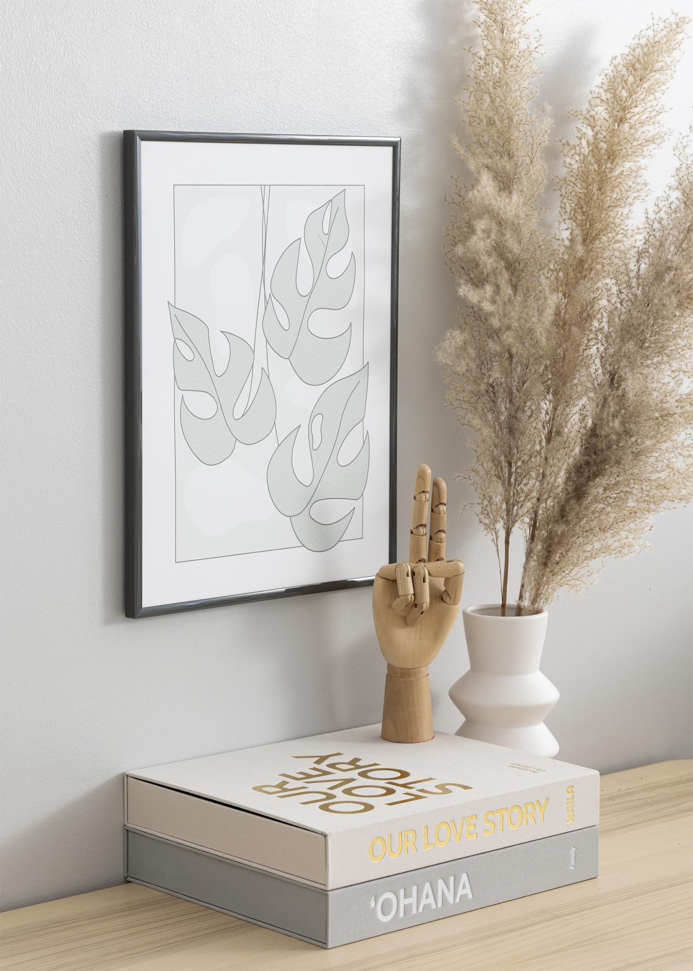 Η κορνίζα διαθέτει λεπτό προφίλ με πλάτος μόλις 9,8 mm και βάθος 16,5 mm, προσφέροντας μια κομψή και μοντέρνα εμφάνιση. Η γυαλιστερή επιφάνεια της κορνίζας συμπληρώνει το γκρι χρώμα της και προσθέτει μια επιπλέον πινελιά κομψότητας στη διακόσμηση του τοίχου σας. Για να διασφαλιστεί ότι η εικόνα σας προβάλλεται στην καλύτερη δυνατή κατάσταση, η κορνίζα είναι εξοπλισμένη με κρυστάλλινο και άθραυστο ακρυλικό γυαλί που προστατεύει από τη σκόνη και τις ζημιές. Το ακρυλικό γυαλί διαθέτει προστατευτική μεμβράνη και στις δύο πλευρές που αφαιρείται εύκολα πριν από τη χρήση.