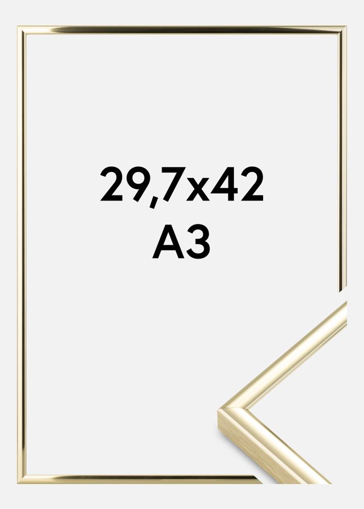 Κομψή κενή κορνίζα από αλουμίνιο σε χρυσό με λεπτό προφίλ σε μοντέρνο σχέδιο. Αυτή είναι μια από τις καλύτερες κορνίζες αλουμινίου της Nielsens με υψηλή ποιότητα σε όλες τις λεπτομέρειες. Τέλεια όταν ψάχνετε για μια όμορφη κορνίζα που προσδίδει στο θέμα σας μια κομψή ένταξη.