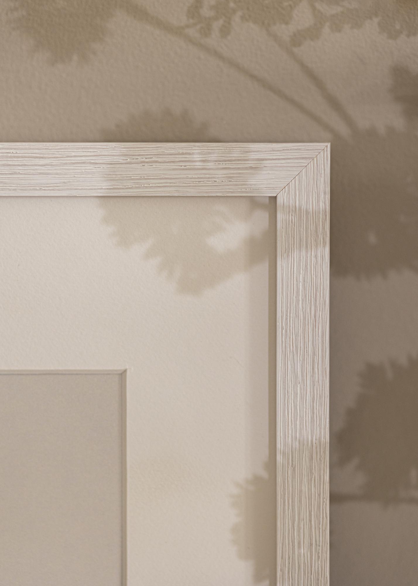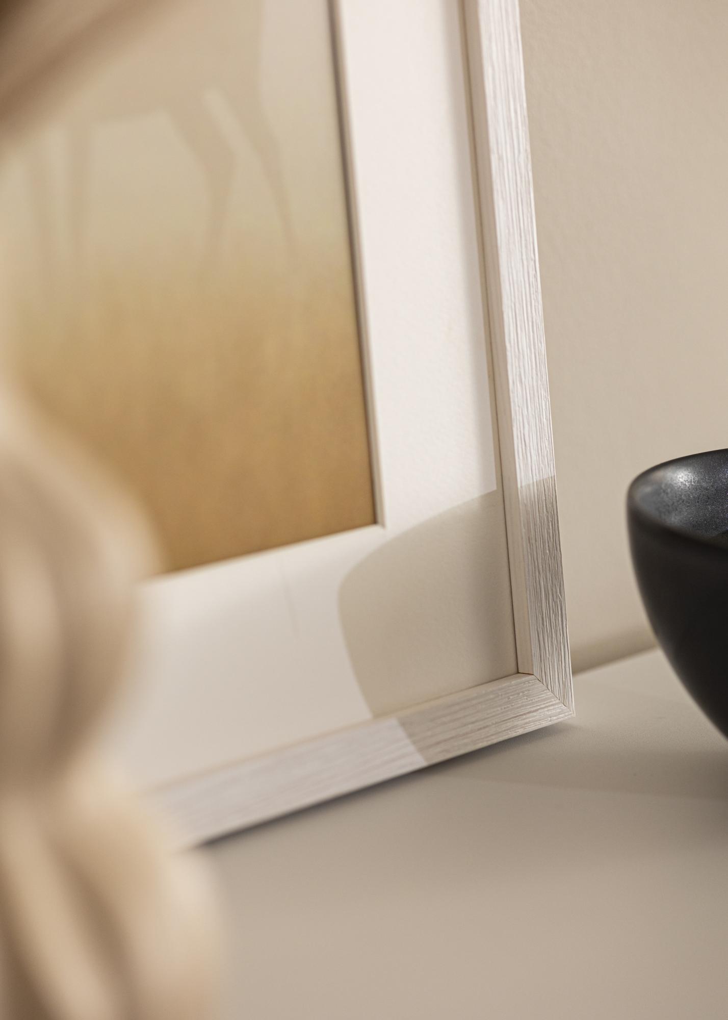 Κομψή λευκή ξύλινη κορνίζα υψηλής ποιότητας με αίσθηση λέιζερ όπου διακρίνεται η ξύλινη υφή. Η λεπτή λίστα της κορνίζας ταιριάζει εξίσου καλά σε έναν σύγχρονο διακοσμητικό στιλ, όπως και σε μια αγροτική εσωτερική διακόσμηση, όπου το λευκό χρώμα με λέιζερ ταιριάζει αρμονικά. Η κορνίζα είναι κατάλληλη για χρήση με αφίσες, ακουαρέλες και φωτογραφίες, και είναι διαθέσιμη σε πολλές διαστάσεις. Συνδυάστε την κορνίζα με διάφορες φωτογραφίες σε διαφορετικά φορμά και κρεμάστε τις μαζί για να δημιουργήσετε έναν εντυπωσιακό τοίχο τέχνης που θα γίνει το κεντρικό σημείο του τοίχου.
