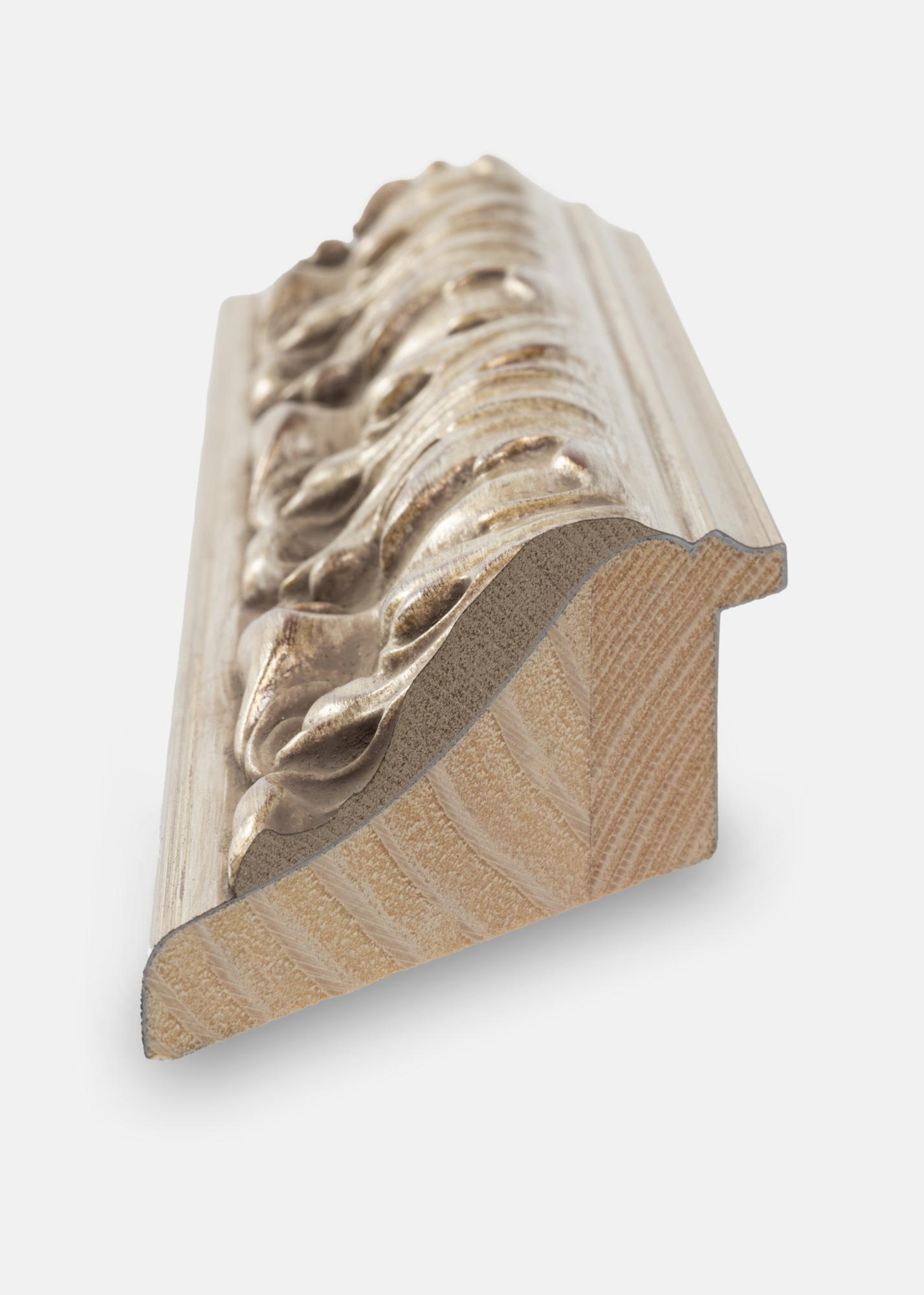 Αυτή η κορνίζα έχει μια εντυπωσιακή λωρίδα πλάτους 64 mm και βάθος 38,5 mm, προσφέροντας μια στιβαρή και σταθερή κορνιζάρισμα. Κατασκευασμένη από υψηλής ποιότητας πεύκο, εξασφαλίζει ανθεκτικότητα και στυλ. Ο σχεδιασμός της κορνίζας είναι επιμελώς σχεδιασμένος για να ταιριάζει σε διάφορους τύπους έργων τέχνης, από παραδοσιακούς πίνακες μέχρι σύγχρονες φωτογραφίες.