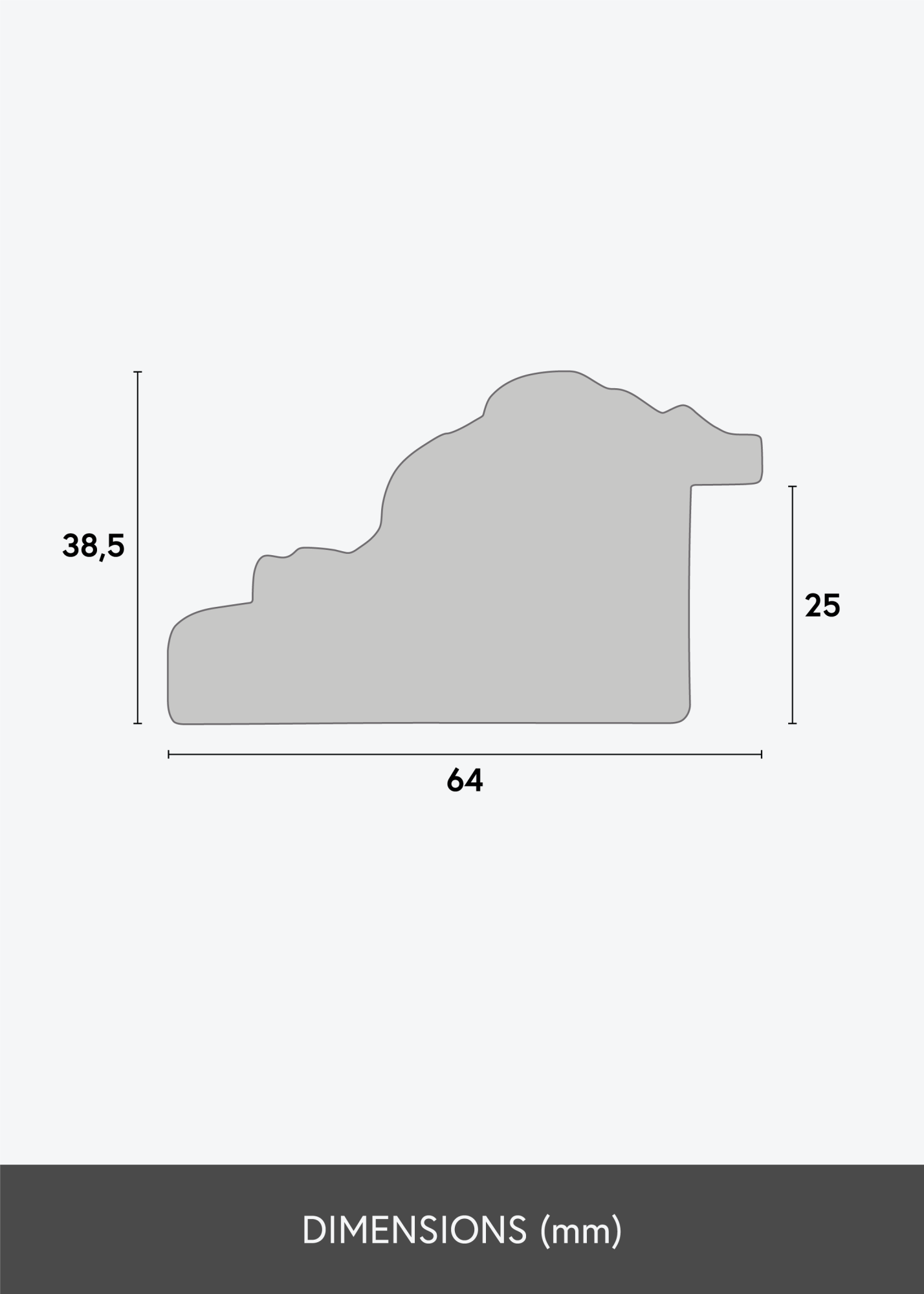 Η κορνίζα έχει ένα φαρδύ κούφωμα 64 χιλιοστών και βάθος 38,5 χιλιοστών, καθιστώντας την ανθεκτική και εντυπωσιακή. Κατασκευασμένη από πεύκο, αυτή η κορνίζα είναι ανθεκτική και υψηλής ποιότητας. Καθώς κατασκευάζουμε την κορνίζα στο δικό μας εργαστήριο κορνίζας, μπορείτε να είστε σίγουροι ότι κάθε λεπτομέρεια είναι προσεκτικά μελετημένη για να προσφέρει στο σπίτι ή το γραφείο σας μια σοφιστικέ πινελιά.