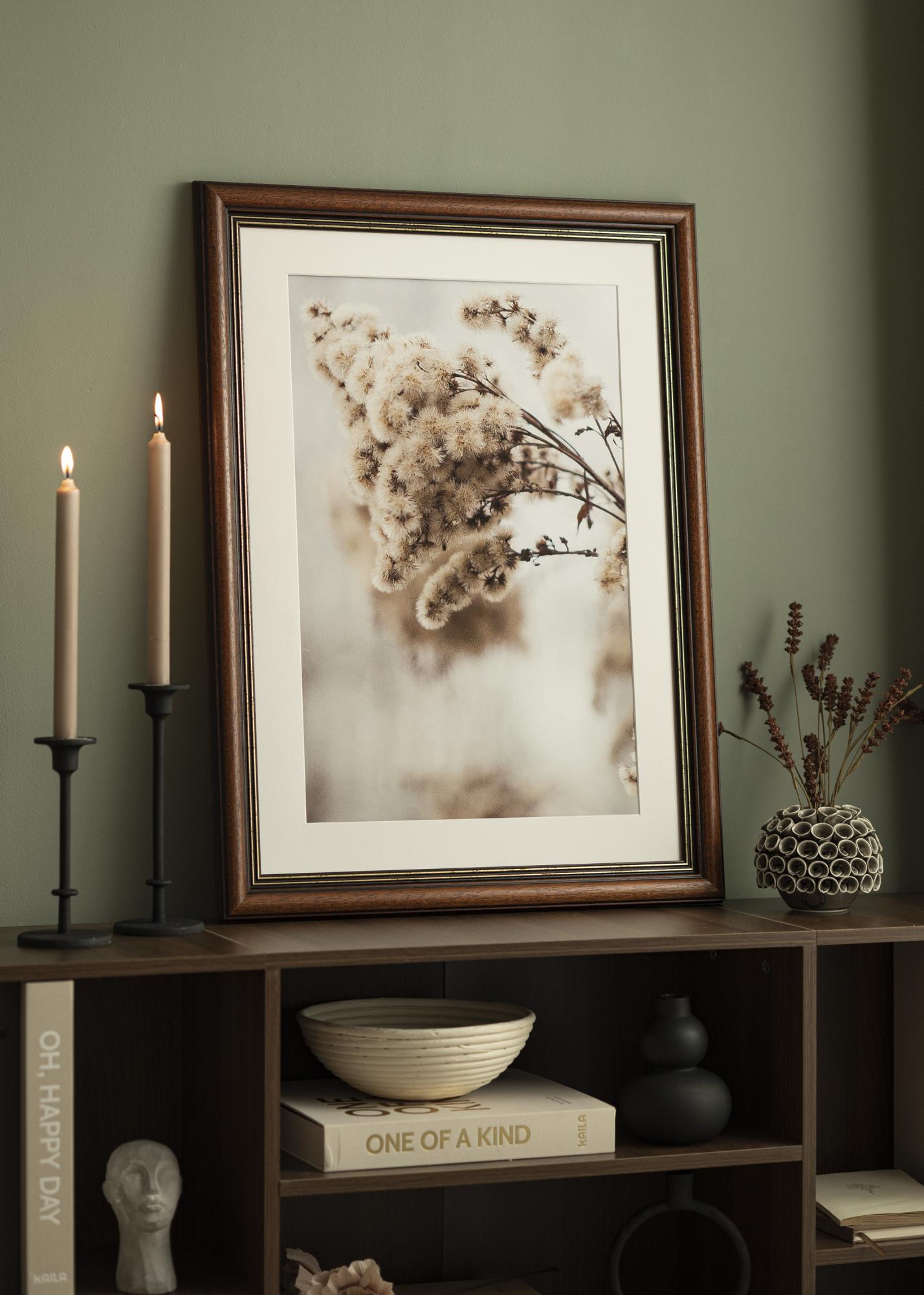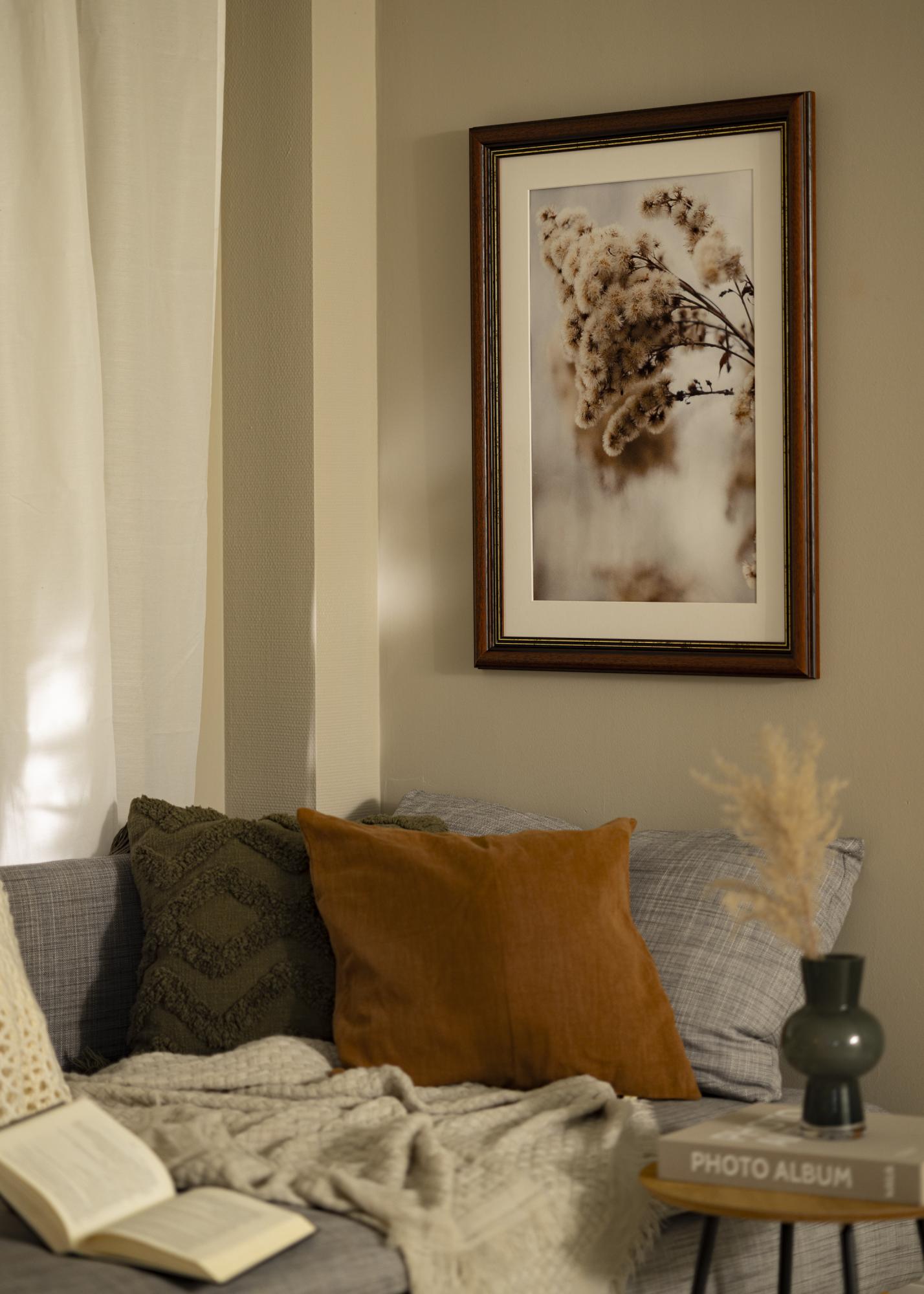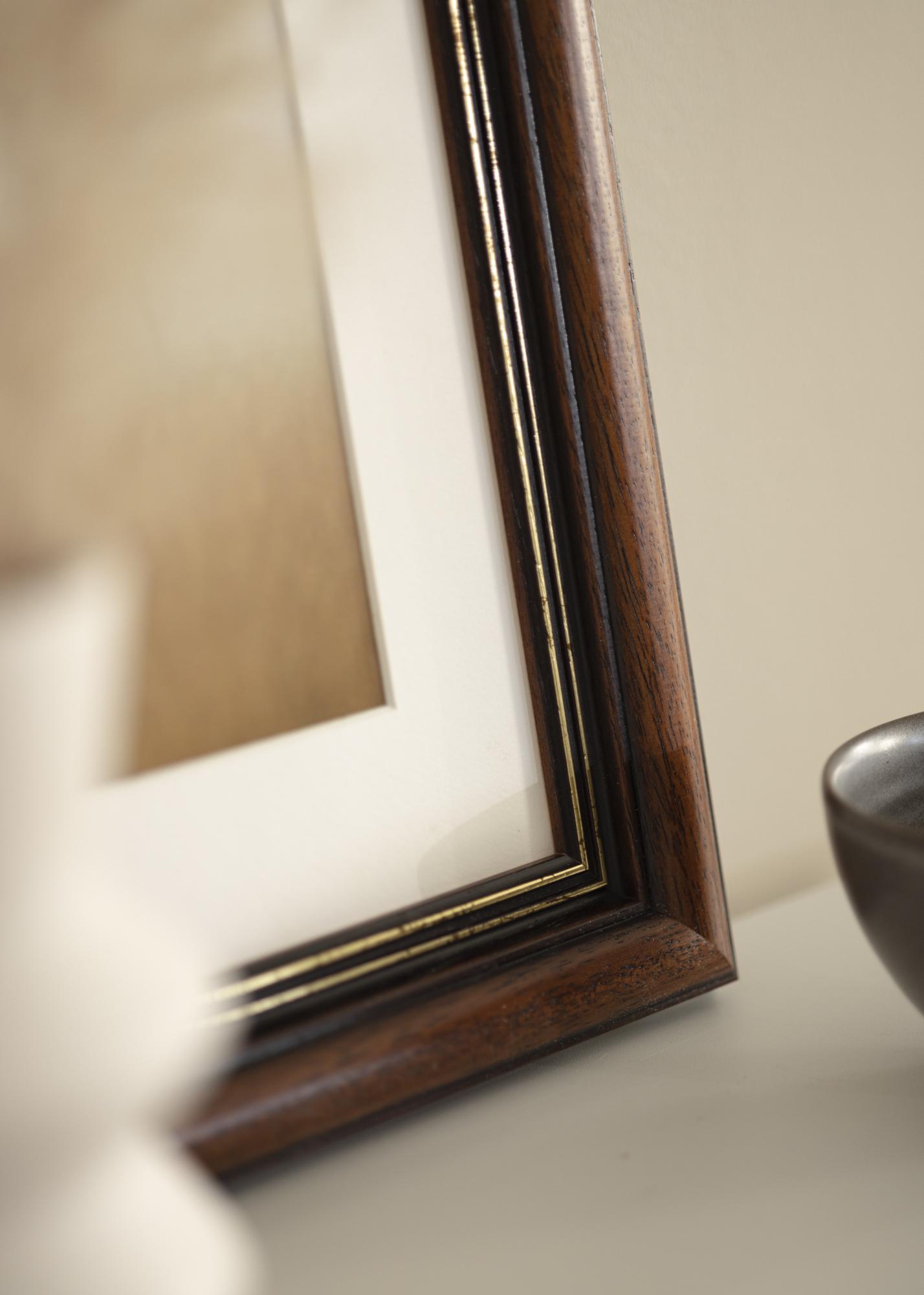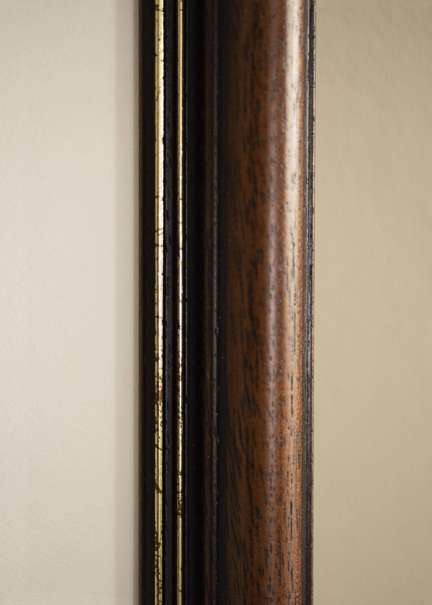 Αυτή η όμορφη ξύλινη κορνίζα έχει κλασικό σχεδιασμό με τη βαθιά καφέ απόχρωσή της και την παραδοσιακή της διαμόρφωση με μαύρα στοιχεία. Στο εσωτερικό, κοντά στο μοτίβο, τρέχουν επίσης δύο χρυσαφένιες γραμμές που δίνουν στο μοτίβο σας μια πολυτελή κορνίζα. Η κορνίζα έχει επίσης υποστεί επεξεργασία για να αποκτήσει τη στυλάτη φθαρμένη εμφάνιση που την κάνει να φαίνεται σαν να κουβαλάει μια ιστορία.