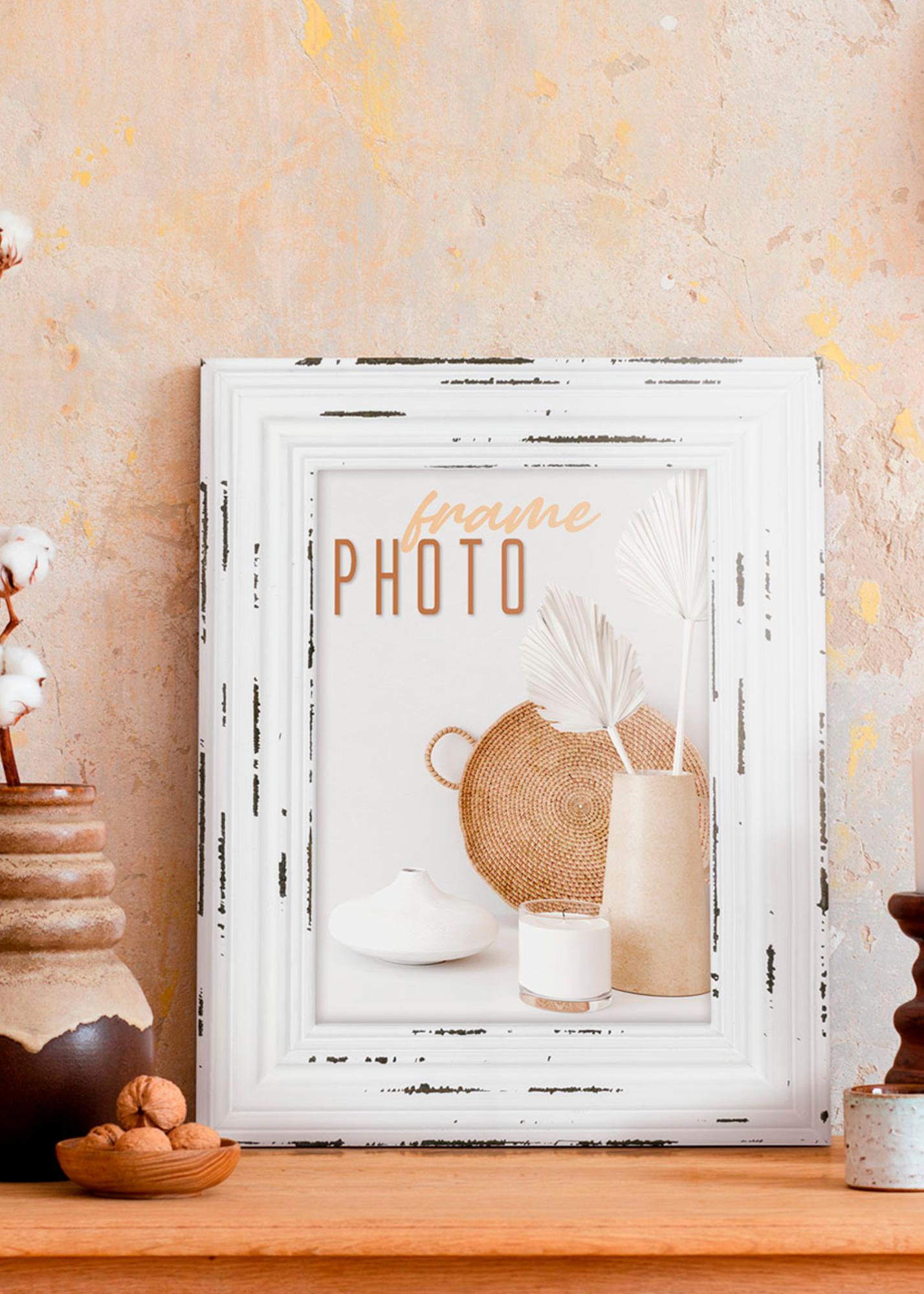 Δώστε στις αναμνήσεις σας μια μοναδική κορνίζα με αυτή τη γοητευτική κορνίζα φωτογραφιών σε στυλ βίντατζ. Με τις διαστάσεις της 10x15 cm, ταιριάζει τέλεια για να αναδείξετε τις αγαπημένες σας φωτογραφίες. Η φθαρμένη λευκή επιφάνεια συμπληρώνεται από σκούρα στοιχεία που προσφέρουν μια αυθεντική αίσθηση περασμένων εποχών.