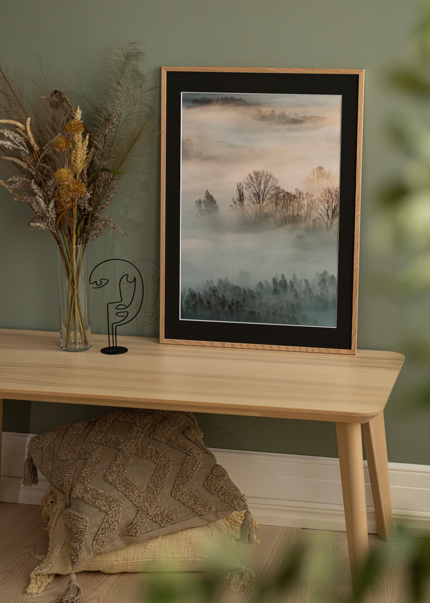 Η κορνίζα, με το λεπτό πλάτος των 12 mm και βάθος 18 mm, διαθέτει ματ φινίρισμα που συμπληρώνει το μαύρο πασπαρτού και δημιουργεί μια αρμονική ενότητα. Είναι εξοπλισμένη με μεταλλικούς γάντζους στο πίσω μέρος, καθιστώντας εύκολη την ανάρτηση της εικόνας σας τόσο οριζόντια όσο και κάθετα, ανάλογα με τον προσανατολισμό του θέματος.