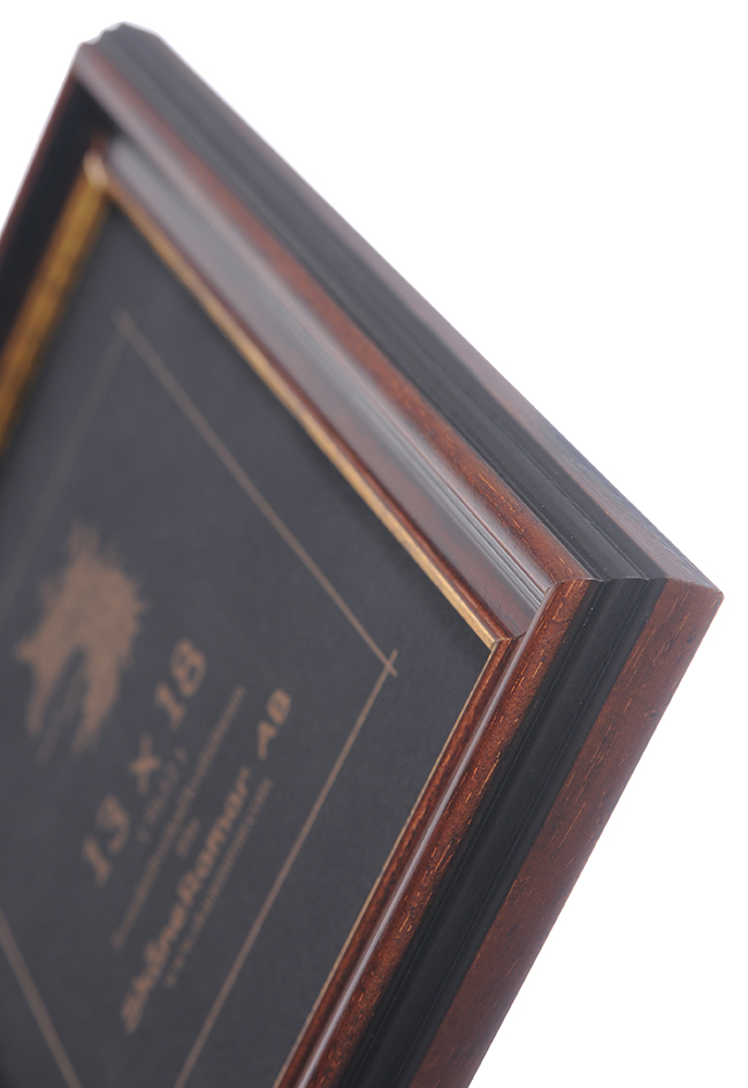 Rättvik 932 είναι μια όμορφη καφέ κορνίζα υψηλής ποιότητας. Η κορνίζα έχει ένα ευρύ προφίλ με μια χρυσή ακμή δίπλα στο μοτίβο που δίνει στην κορνίζα μια κομψή και διαχρονική αίσθηση. Η Ράττβικ είναι μια εξαιρετική επιλογή όταν αναζητάτε μια διαχρονική κορνίζα που ταιριάζει στους περισσότερους τύπους μοτίβων.