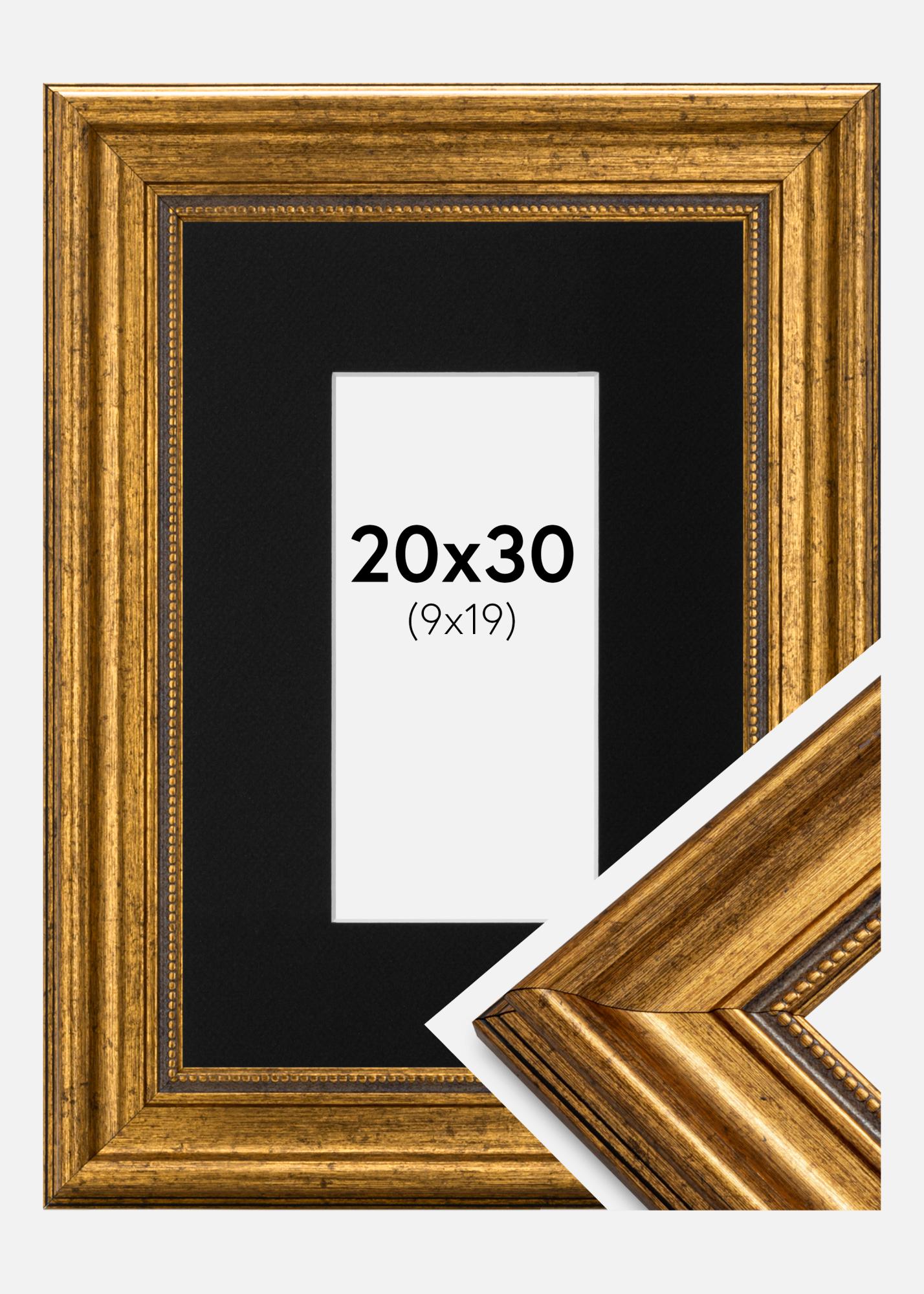 Πλαίσιο Ροκοκό Χρυσός 20x30 cm - Πασπαρτού Μαύρος 10x20 cm