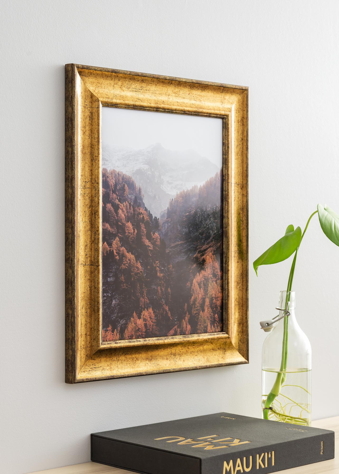 Η Saltsjöbaden Gold διατίθεται σε διάφορα μεγέθη, εκ των οποίων αυτή η κορνίζα ταιριάζει για εικόνες μεγέθους 50x60 cm.