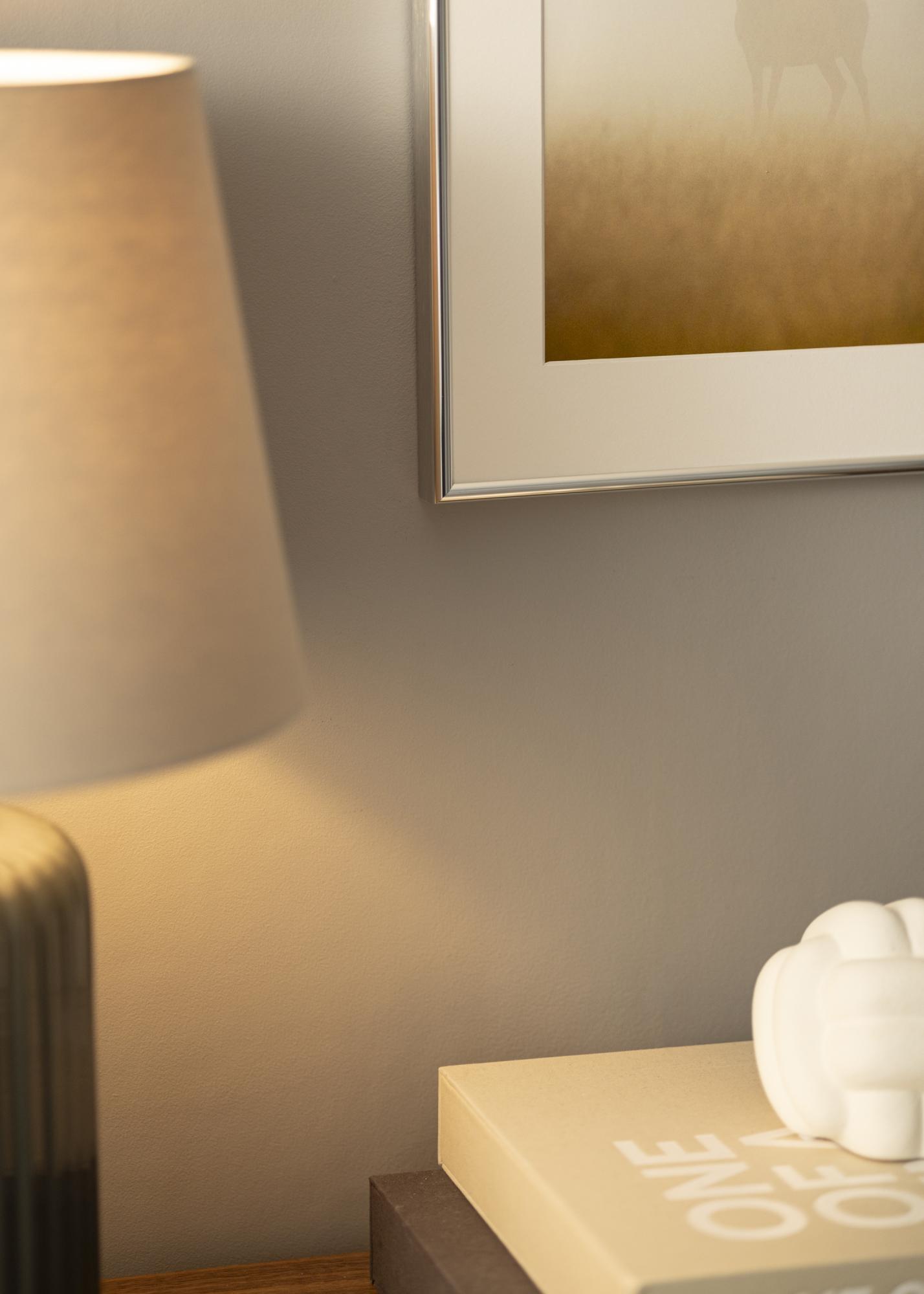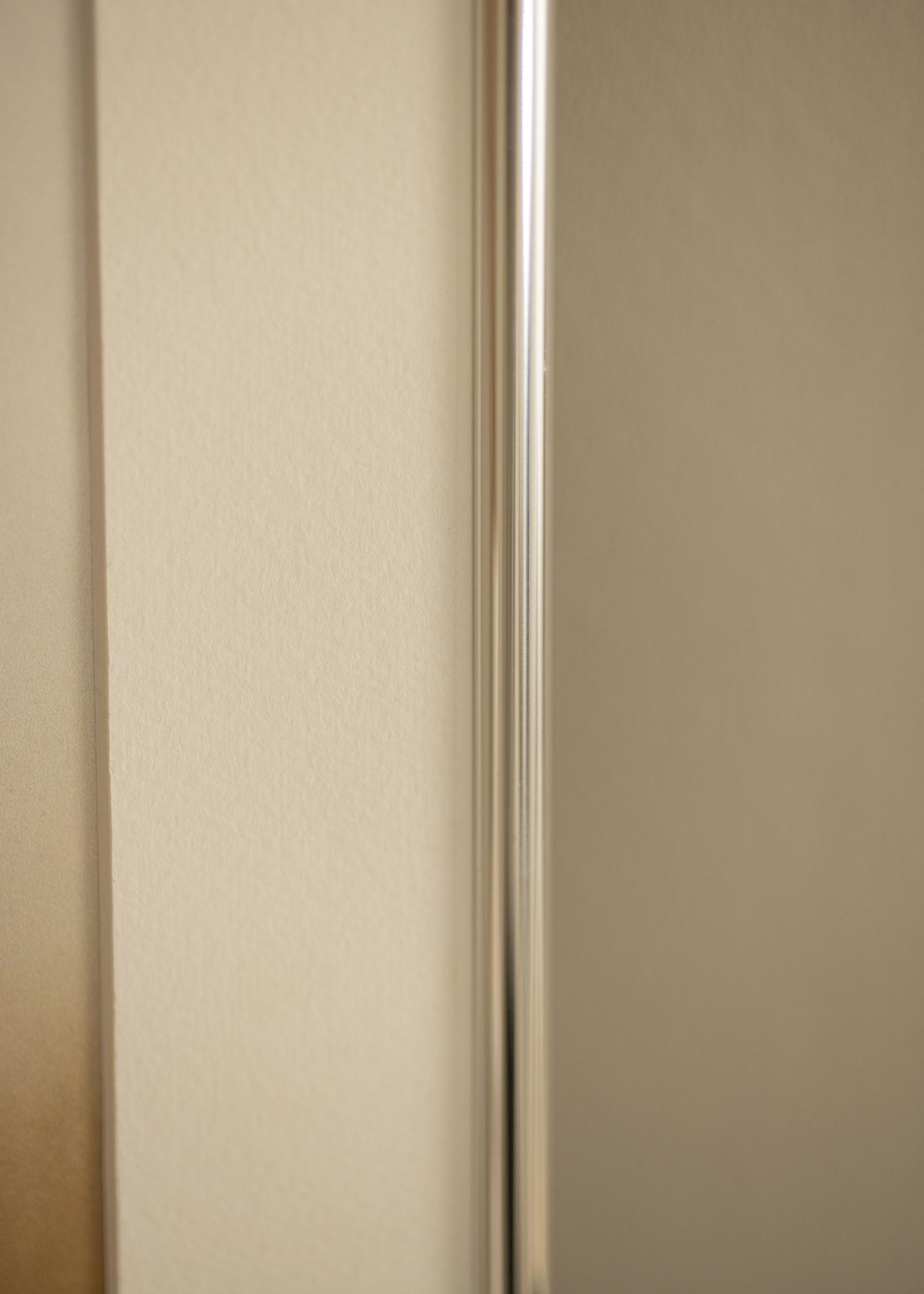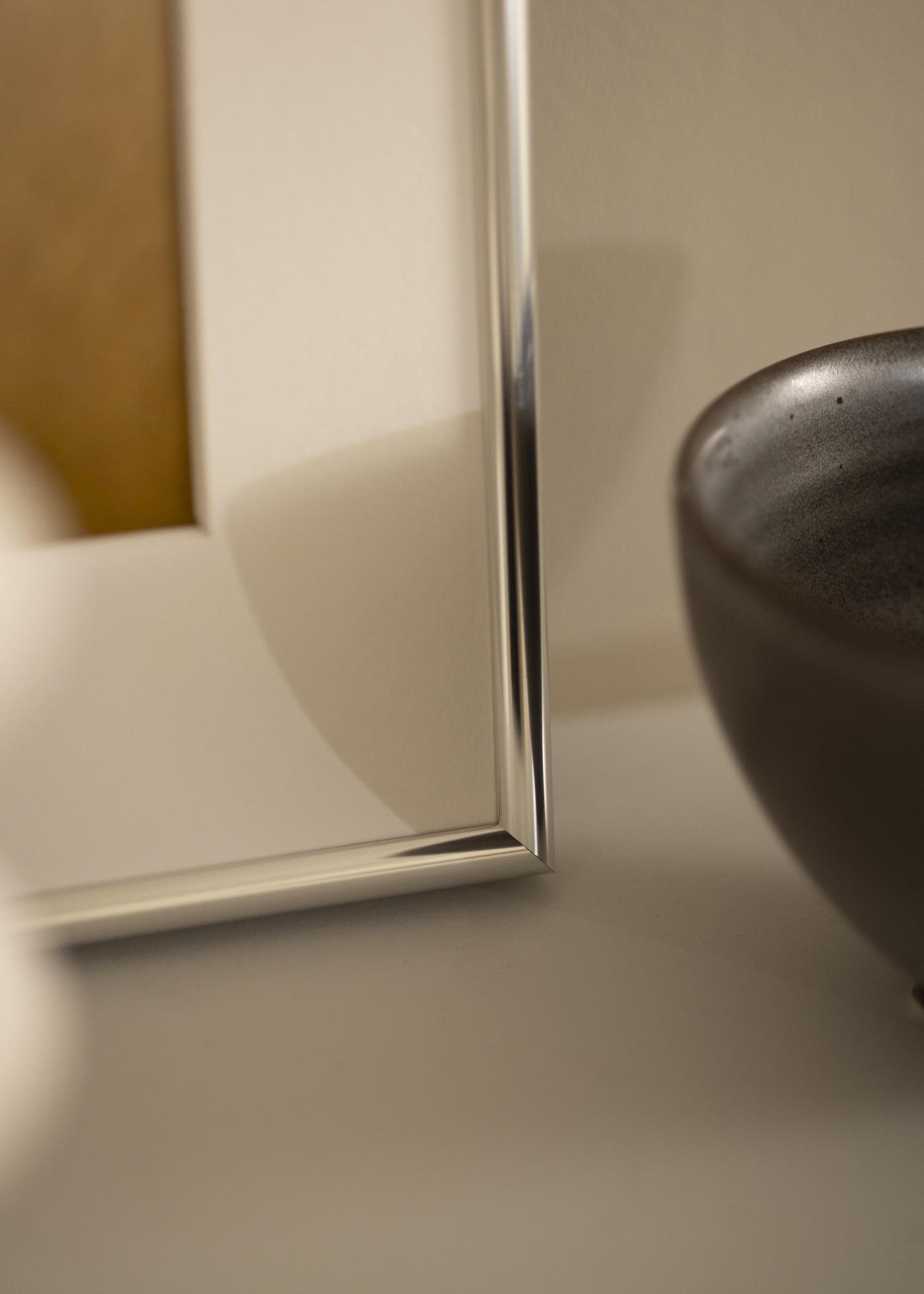 Μοντέρνα κορνίζα από αστραφτερό ασημί με βουρτσισμένες πλευρές που έχει βάθος προφίλ 26 mm. Αυτό κάνει το θέμα να προεξέχει από τον τοίχο και δημιουργεί ένα όμορφο εφέ 3D. Ιδανικό όταν αναζητάτε μια απλή ασημί κορνίζα που προσφέρει στα έργα σας μια κομψή πλαισίωση.