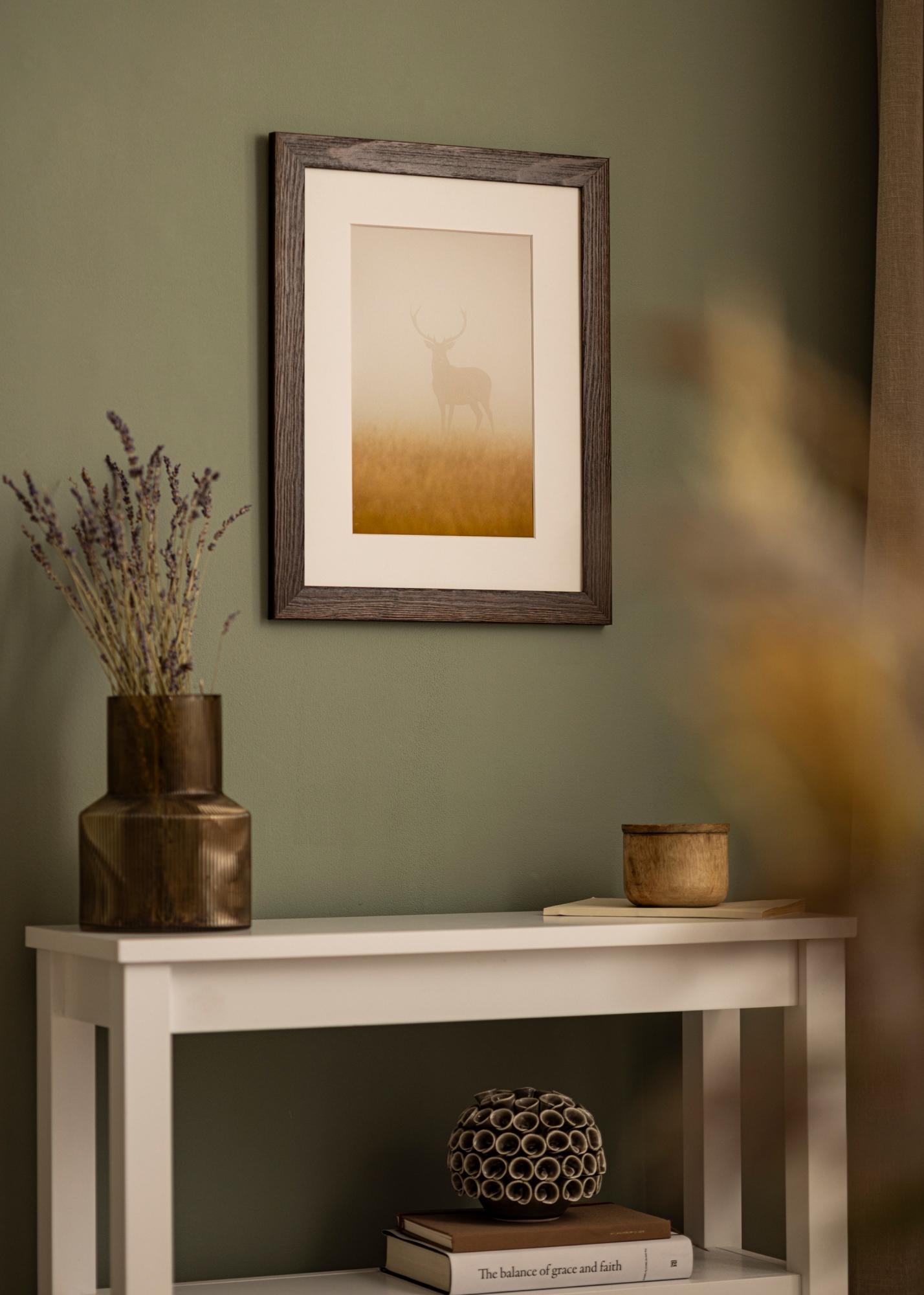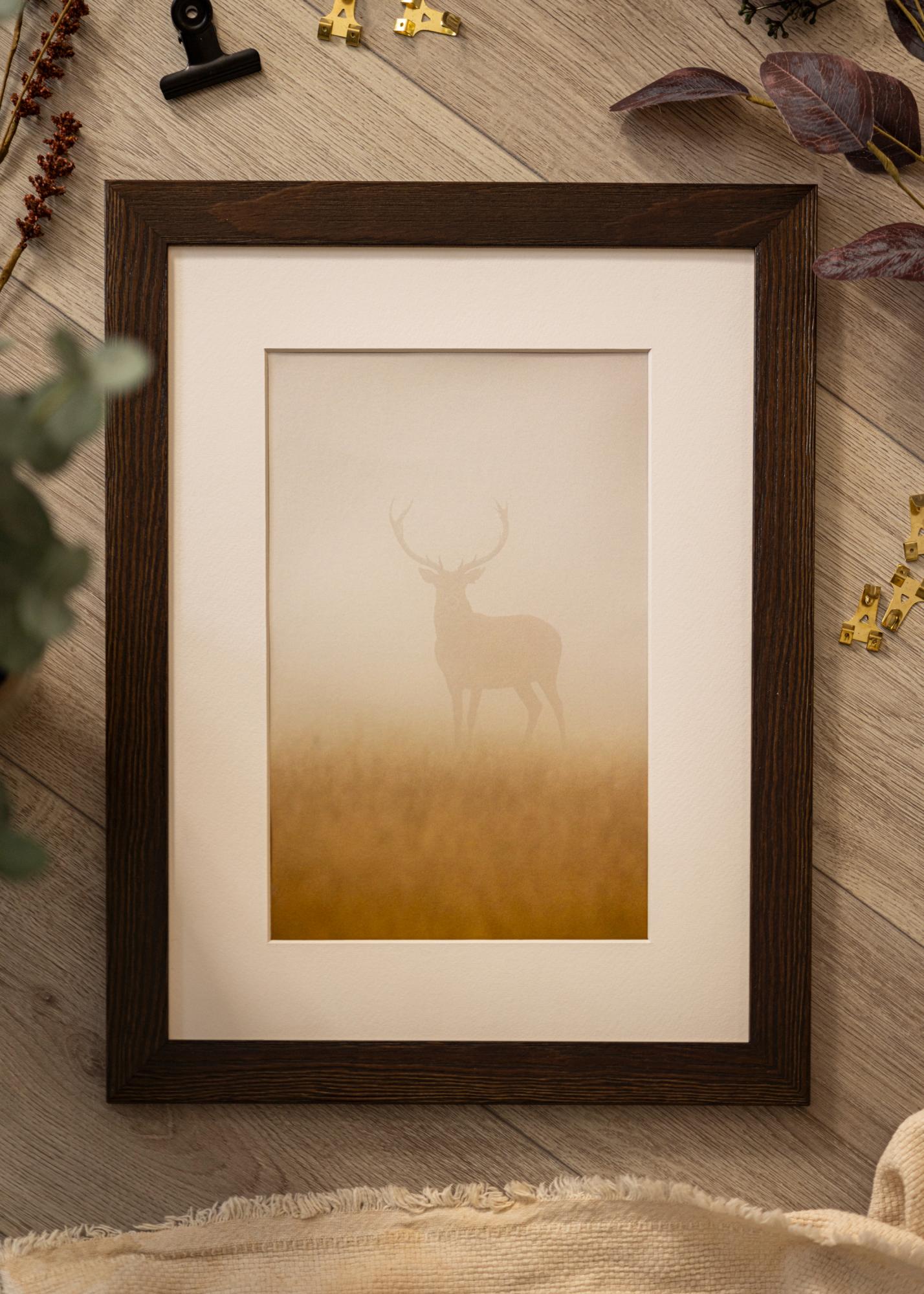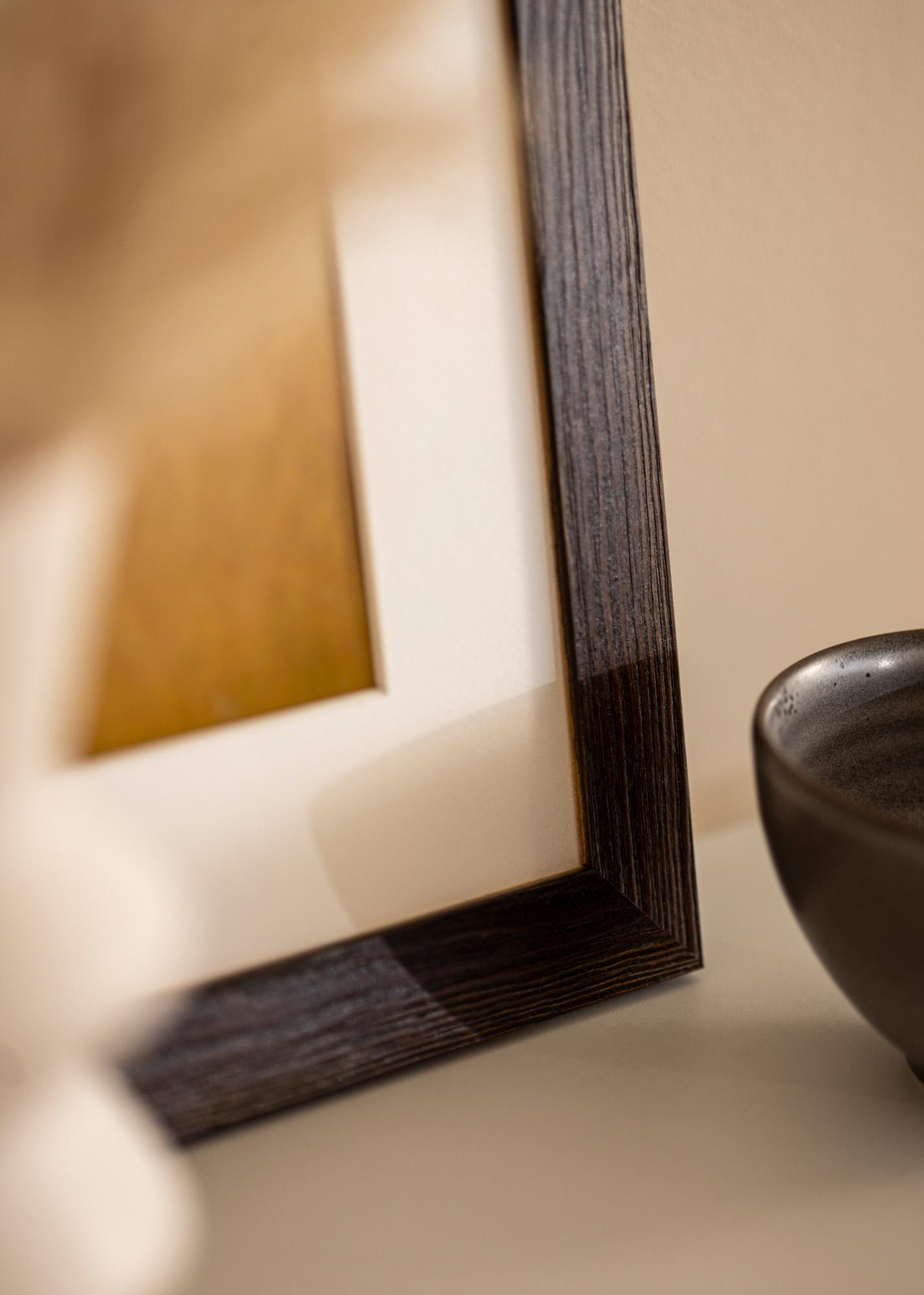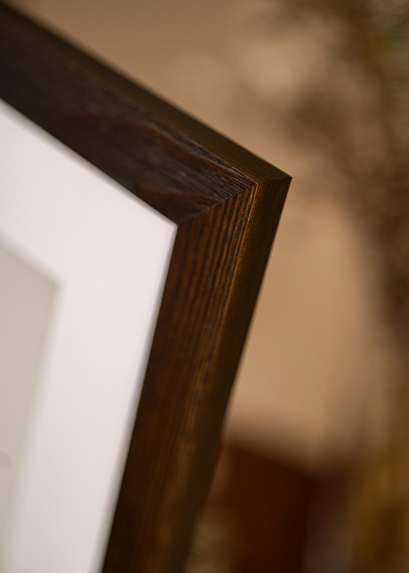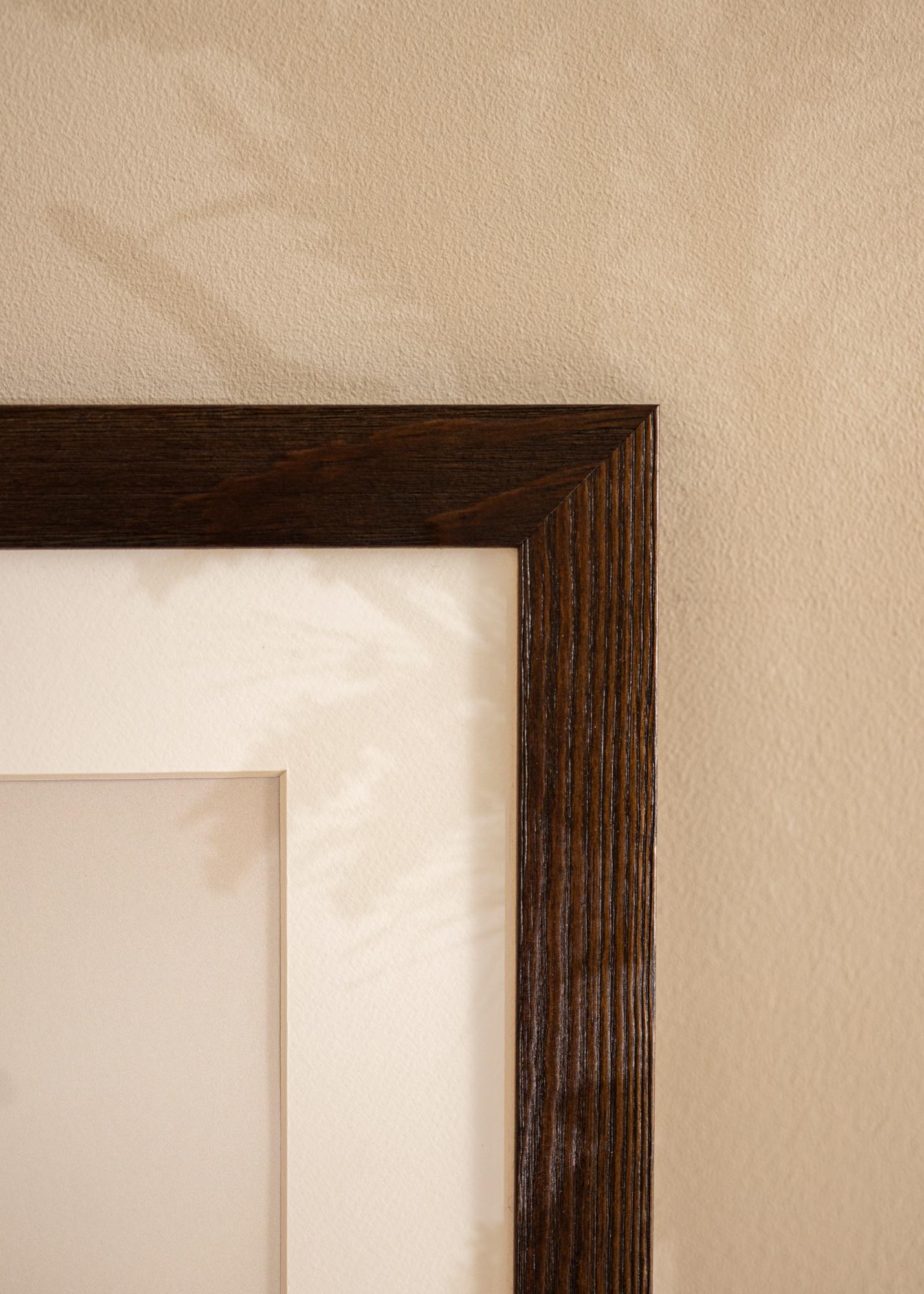 Γερή καφέ ξύλινη κορνίζα με ορατά νερά ξύλου και ευρύ προφίλ. Ταιριάζει καλά όταν ψάχνετε μια σκούρα ξύλινη κορνίζα με φυσική αίσθηση. Ιδανική για περιβαλλοντικές και τοπικές φωτογραφίες.