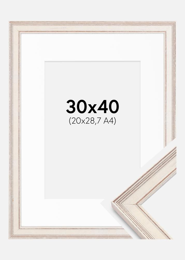 Πλαίσιο Shabby Chic Λευκό 30x40 cm - Πασπαρτού Λευκό 21x29,7 cm (A4)