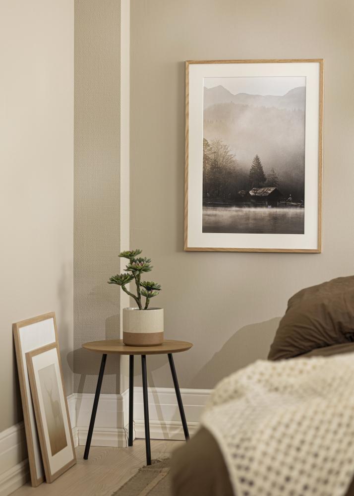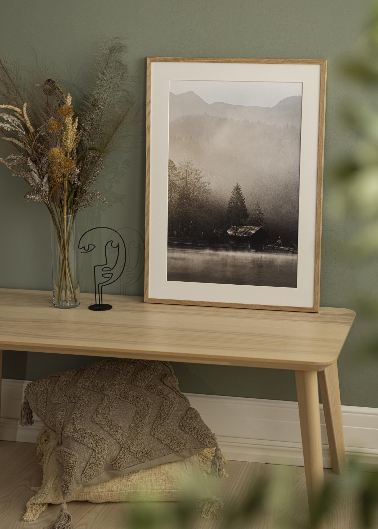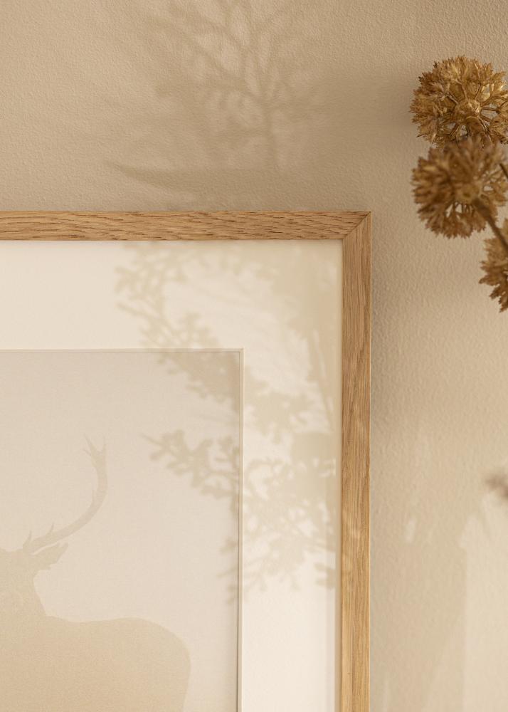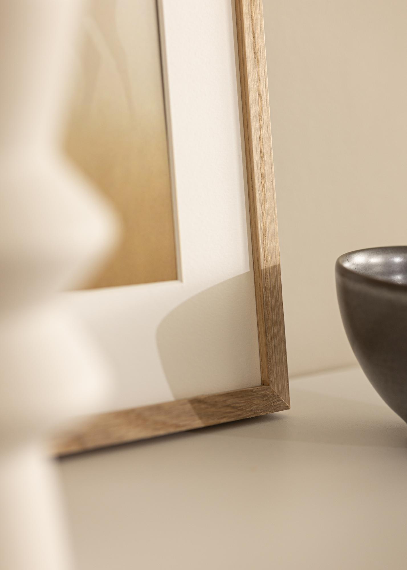Η Soul Ek είναι μια κορνίζα από συμπαγή βελανιδιά με ένα κομψό και γωνιώδες προφίλ και πλάτος λίστας 13,5 mm. Το βάθος της λίστας στα 22 mm κάνει τη κορνίζα να προεξέχει λίγο από τον τοίχο και δημιουργεί ένα εντυπωσιακό 3D-εφέ. Αυτό το βάθος – σε συνδυασμό με το συμπαγές ξύλο βελανιδιάς – επίσης κάνει τη κορνίζα να αισθάνεται στιβαρή και σταθερή. Είναι μια κορνίζα που με τον λιτό και ευθύγραμμο σχεδιασμό της έχει μια σύγχρονη εμφάνιση, ενώ ταυτόχρονα μια αυθεντική ξύλινη κορνίζα είναι διαχρονική και ταιριάζει τόσο σε μοντέρνα όσο και κλασικά σπίτια.