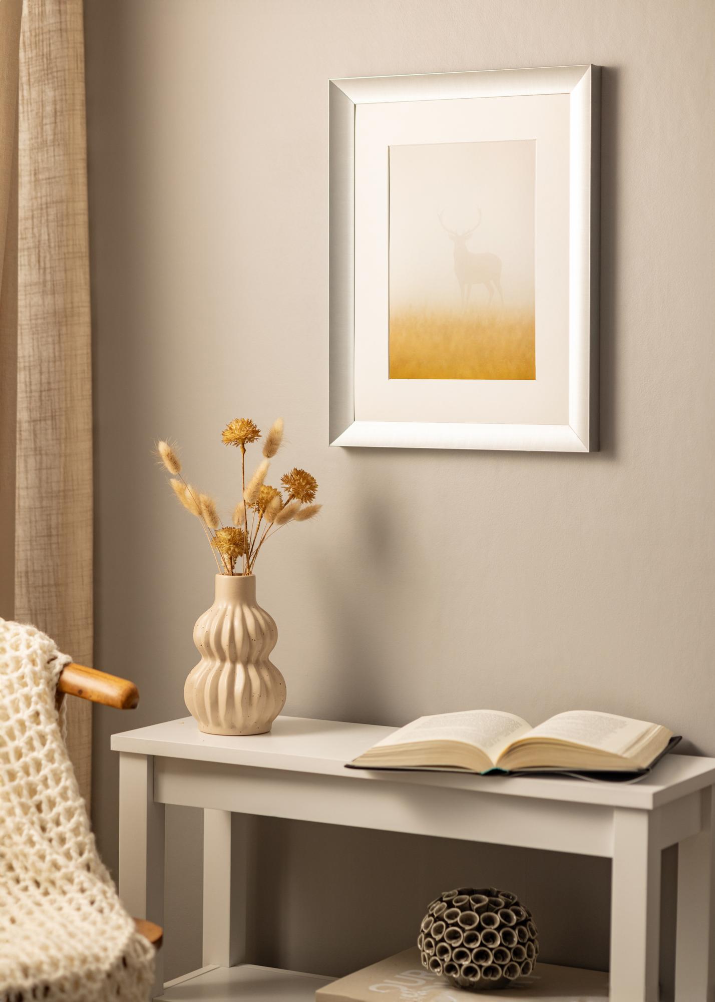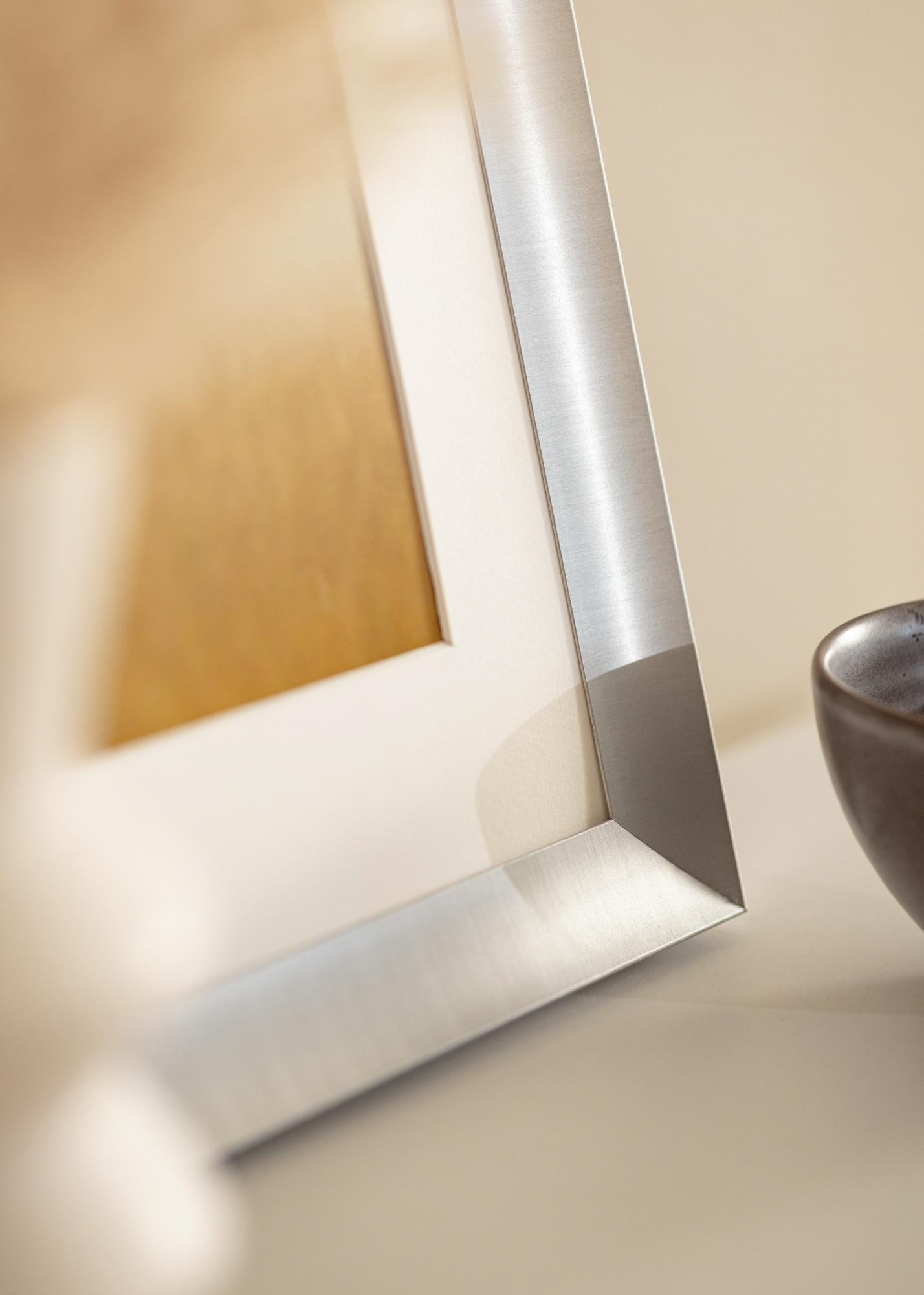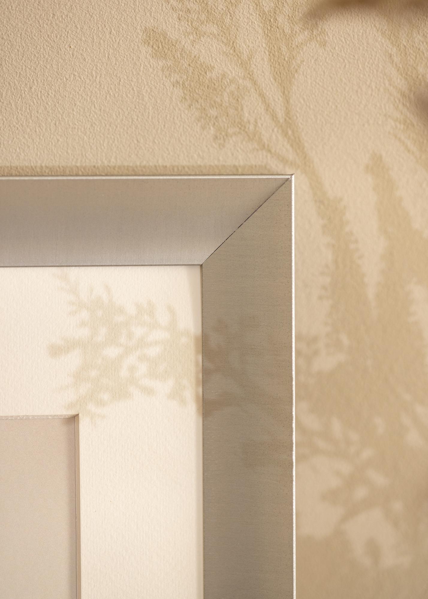 Κομψή κορνίζα σε ημικατάματ ασημένια απόχρωση. Ιδανική για να κορνιζάρετε ασπρόμαυρες φωτογραφίες και μοτίβα σε κλίμακα του γκρι, αλλά κάθε εικόνα δείχνει όμορφα μέσα στην κορνίζα. Η λιτή εμφάνιση σε συνδυασμό με το διακριτικό ασημί χρώμα κάνει την κορνίζα να ταιριάζει σε όλους τους τύπους εσωτερικών χώρων και περιβαλλόντων, αλλά σε έναν τοίχο με χρώμα πάγου ροζ, δροσερό πράσινο ή παστέλ, η κορνίζα φαίνεται ακόμα καλύτερη. Συμπληρώστε τη διακόσμηση με ασημένια αντικείμενα και γραφικές λεπτομέρειες σε μαύρο.