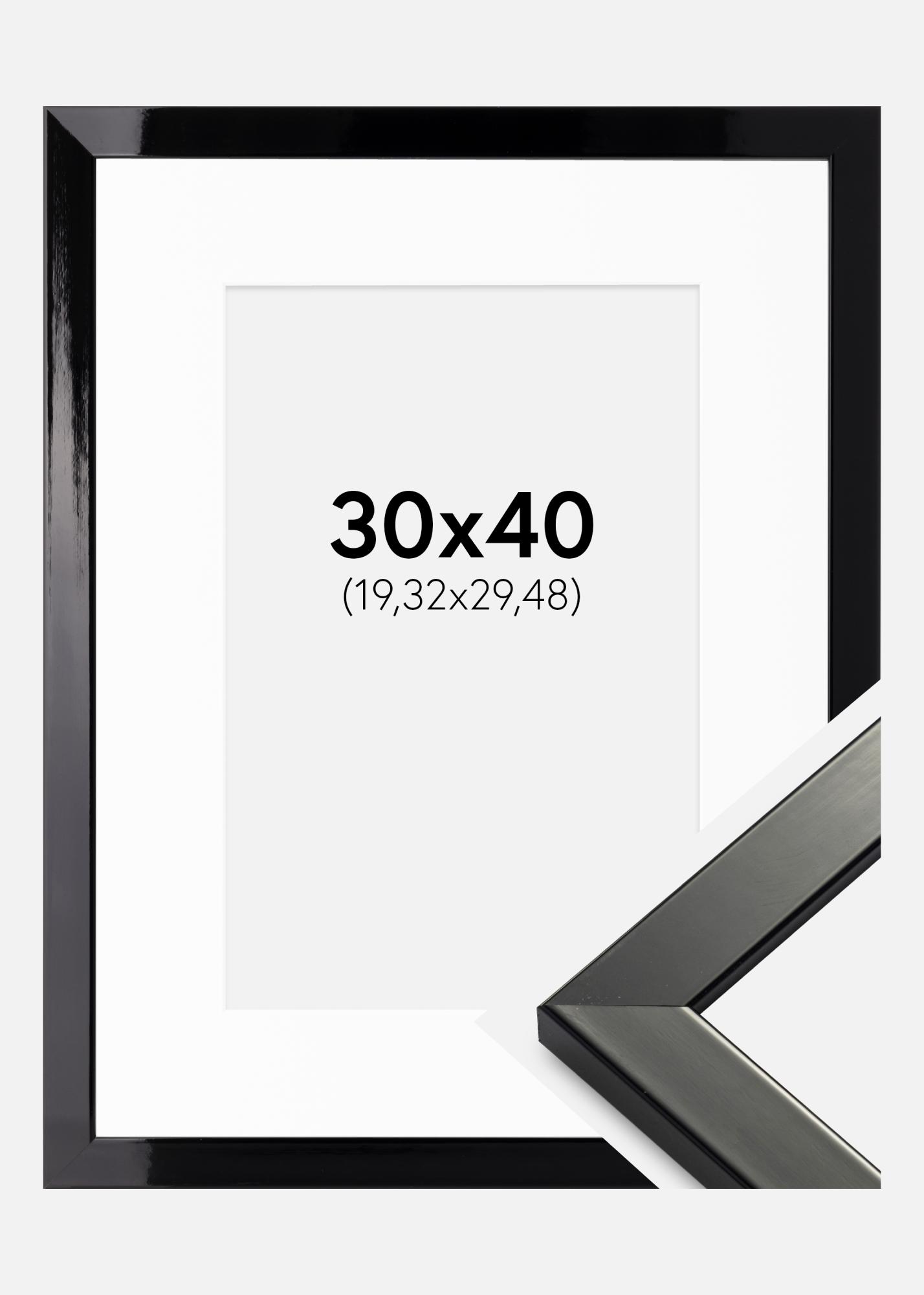Πλαίσιο Uppsala Μαύρο υψηλής λάμψης 30x40 cm - Πασπαρτού Λευκό 8x12 inches