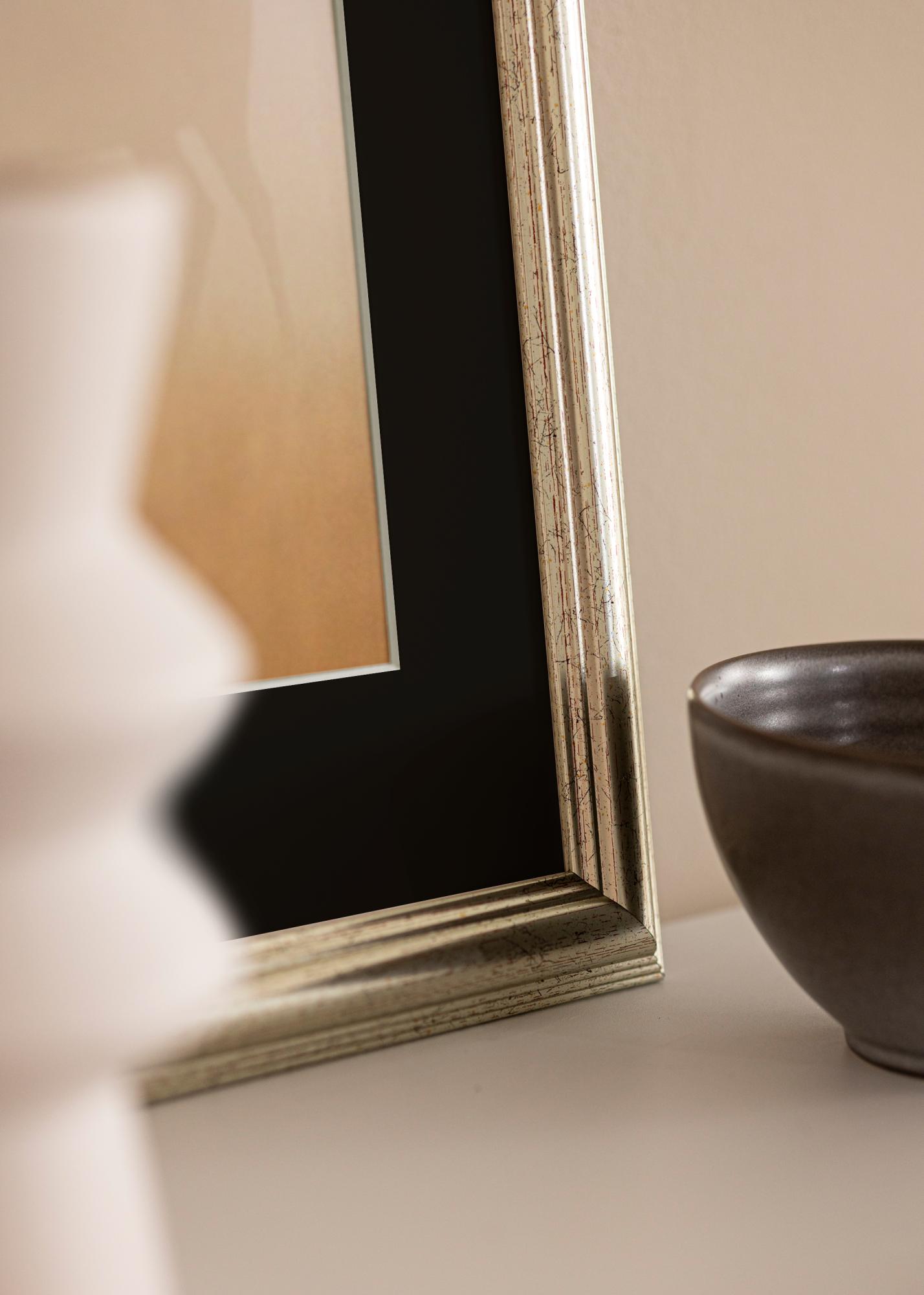 Ζήστε την κομψότητα και την εκλεπτυσμένη αίσθηση με τη μοναδική ασημένια κορνίζα μας, τέλεια για να αναδείξετε την εικόνα ή τη φωτογραφία σας μεγέθους 62x93 εκ. Η γυαλιστερή επιφάνεια της κορνίζας σε συνδυασμό με το μαύρο passepartout δημιουργεί μια δραματική αντίθεση που μαγνητίζει το μάτι του παρατηρητή και προσφέρει στο θέμα σας μια επαγγελματική κορνίζα.