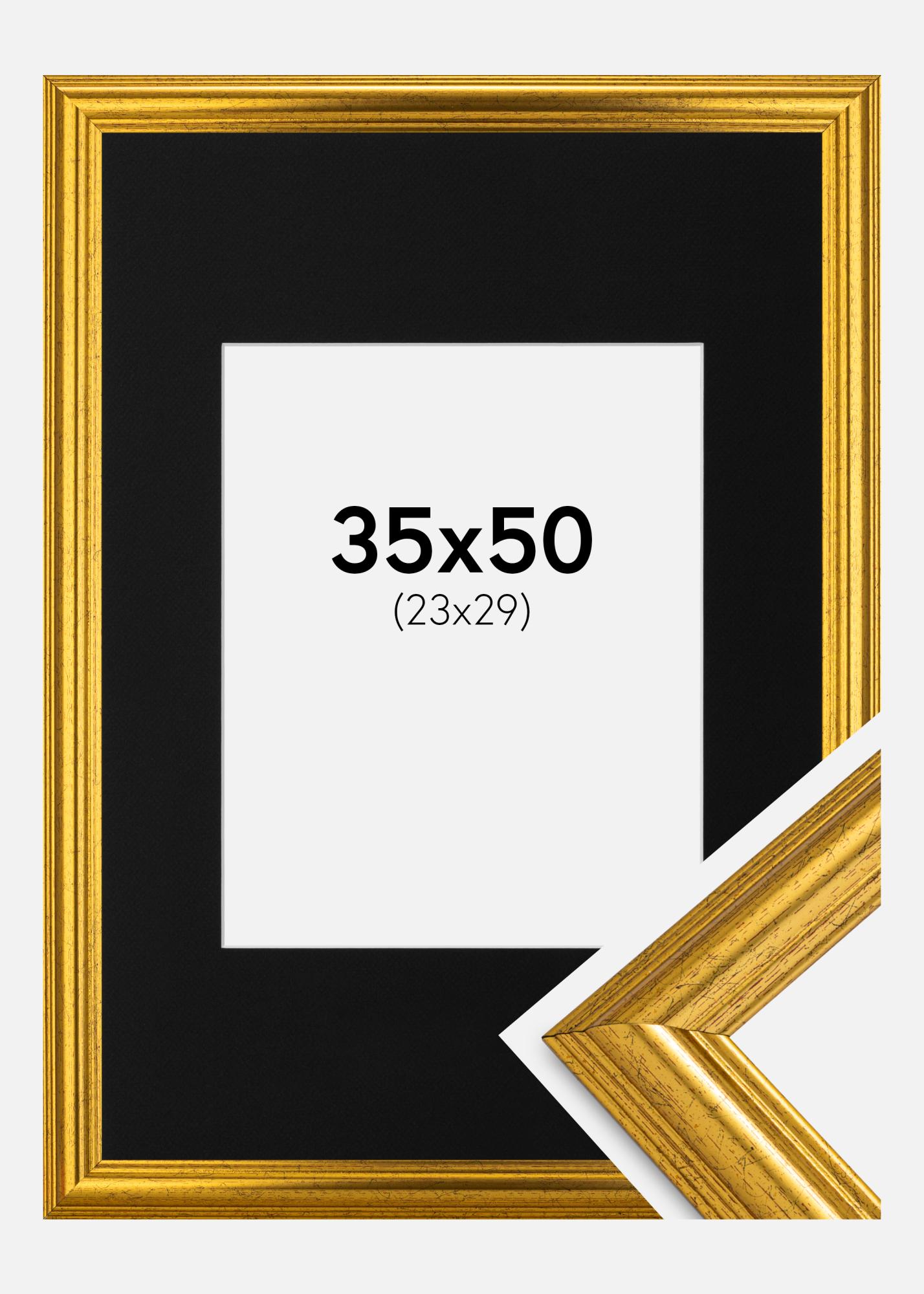 Μετατρέψτε την αγαπημένη σας φωτογραφία ή έργο τέχνης σε πραγματικό πόλο έλξης με αυτήν την κομψή χρυσή κορνίζα, συνοδευόμενη από ένα μαύρο passepartout. Ο κλασικός συνδυασμός του χρυσού και του μαύρου προσδίδει μια αίσθηση πολυτέλειας και αναδεικνύει το θέμα με έναν εκλεπτυσμένο τρόπο. Η βαθιά μαυρίλα του passepartout δημιουργεί μια οπτική παύση που κατευθύνει το μάτι προς την εικόνα και ενισχύει τα χρώματα και τις λεπτομέρειές της.