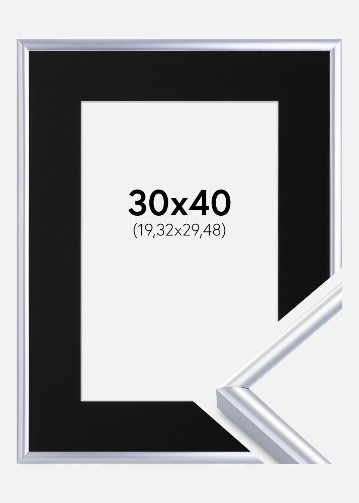 Πλαίσιο Victoria Ασημί 30x40 cm - Πασπαρτού Μαύρος 8x12 inches