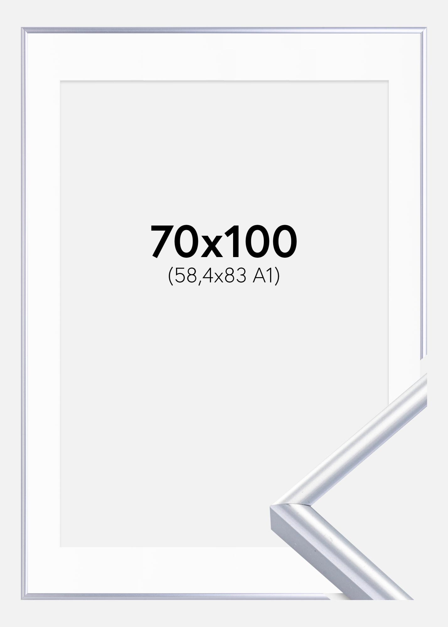 Πλαίσιο Victoria Ασημί 70x100 cm - Πασπαρτού Λευκό 59,4x84 cm (A1)