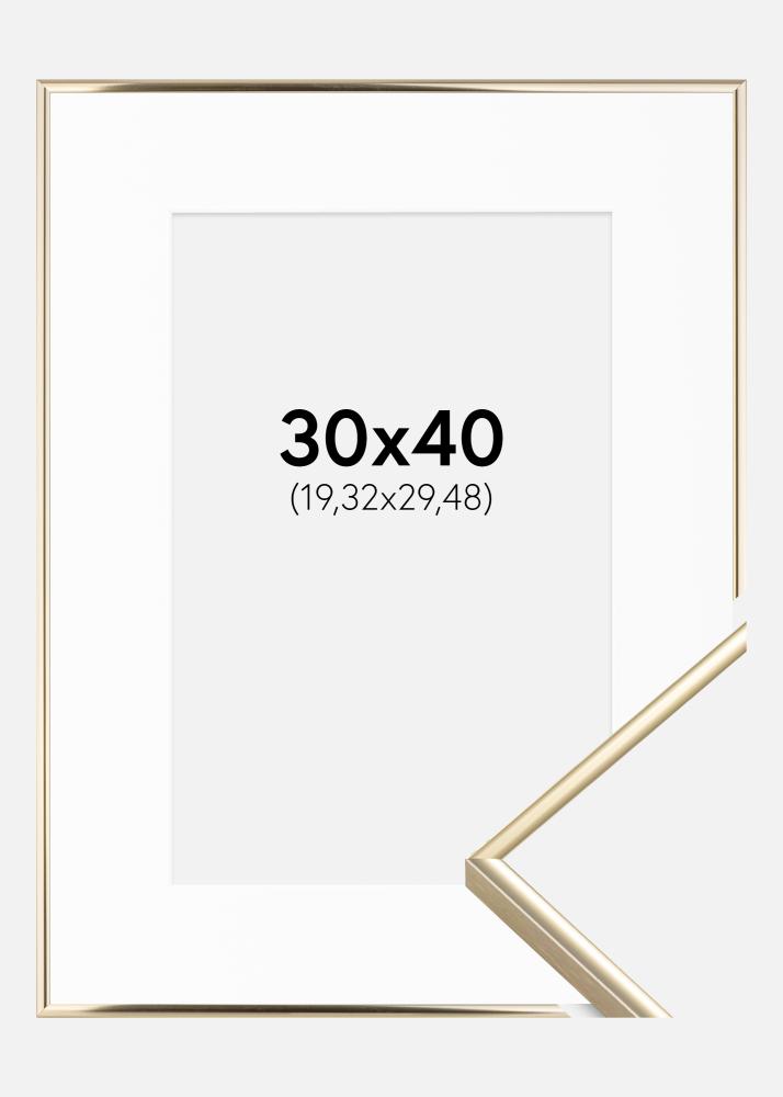 Η κορνίζα έχει κομψό πλάτος 6,5 mm και βάθος 17 mm, προσφέροντας μια sofistik μένη και μοντέρνα αίσθηση. Η γυαλιστερή χρυσή κορνίζα συμπληρώνει το λευκό passepartout και μαζί δημιουργούν ένα αρμονικό κάδρο που ταιριάζει στα περισσότερα σπίτια και στυλ διακόσμησης. Οι εξωτερικές διαστάσεις της κορνίζας είναι 30,4x40,4 εκ, καθιστώντας την ιδανική για τοποθέτηση στον τοίχο.