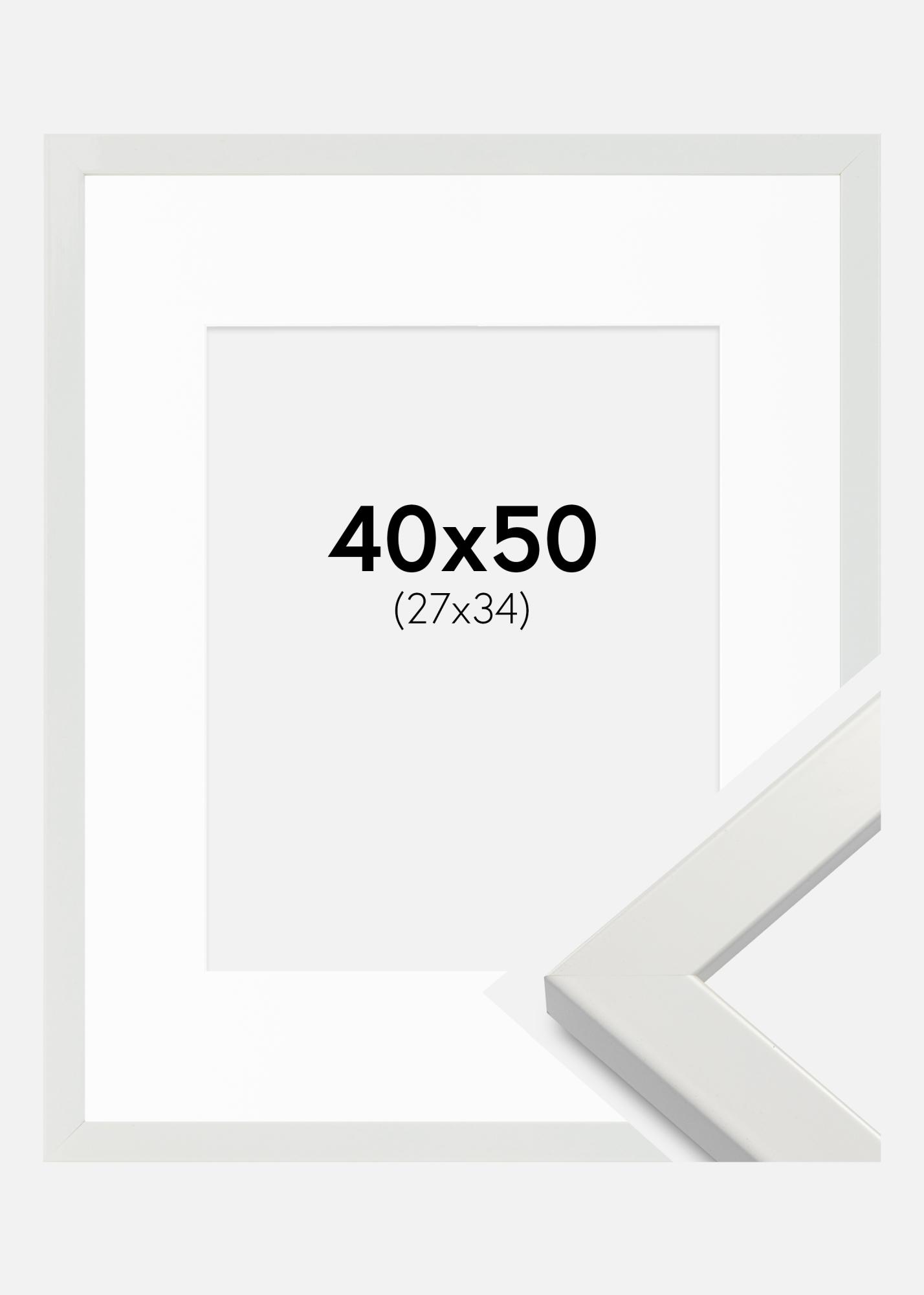 Πλαίσιο White Wood Glossy 40x50 cm - Πασπαρτού Λευκό 28x35 cm