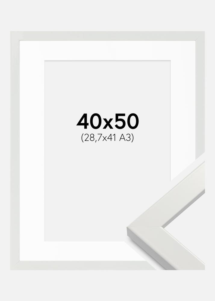 Πλαίσιο White Wood Glossy 40x50 cm - Πασπαρτού Λευκό 29,7x42 cm (A3)