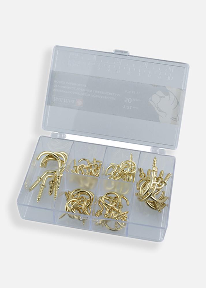 Αυτό το σετ γάντζων περιλαμβάνει 50 γάντζους με επικάλυψη ορείχαλκου σε μεγέθη μεταξύ 7–21 mm. Ιδανικό για διάφορους τύπους αναρτήσεων στο σπίτι, είτε πρόκειται για πίνακες, διακοσμήσεις ή άλλες μικρές λεπτομέρειες. Ένα πρακτικό σετ για εσάς που θέλετε μια εύκολη και κομψή επιλογή συναρμολόγησης.