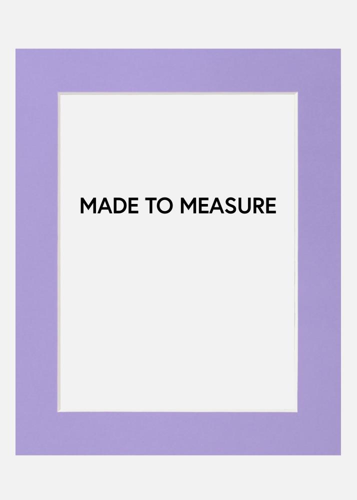Το μωβ passepartout κατόπιν παραγγελίας (λευκός πυρήνας) κατασκευάζεται ακριβώς σύμφωνα με τις επιθυμίες σας! Ακολουθήστε τις οδηγίες μας για να υπολογίσετε εύκολα τις διαστάσεις που θα ταιριάξουν όμορφα με την εικόνα σας.