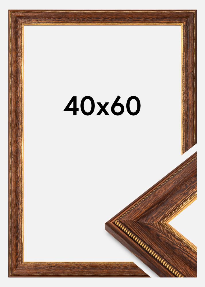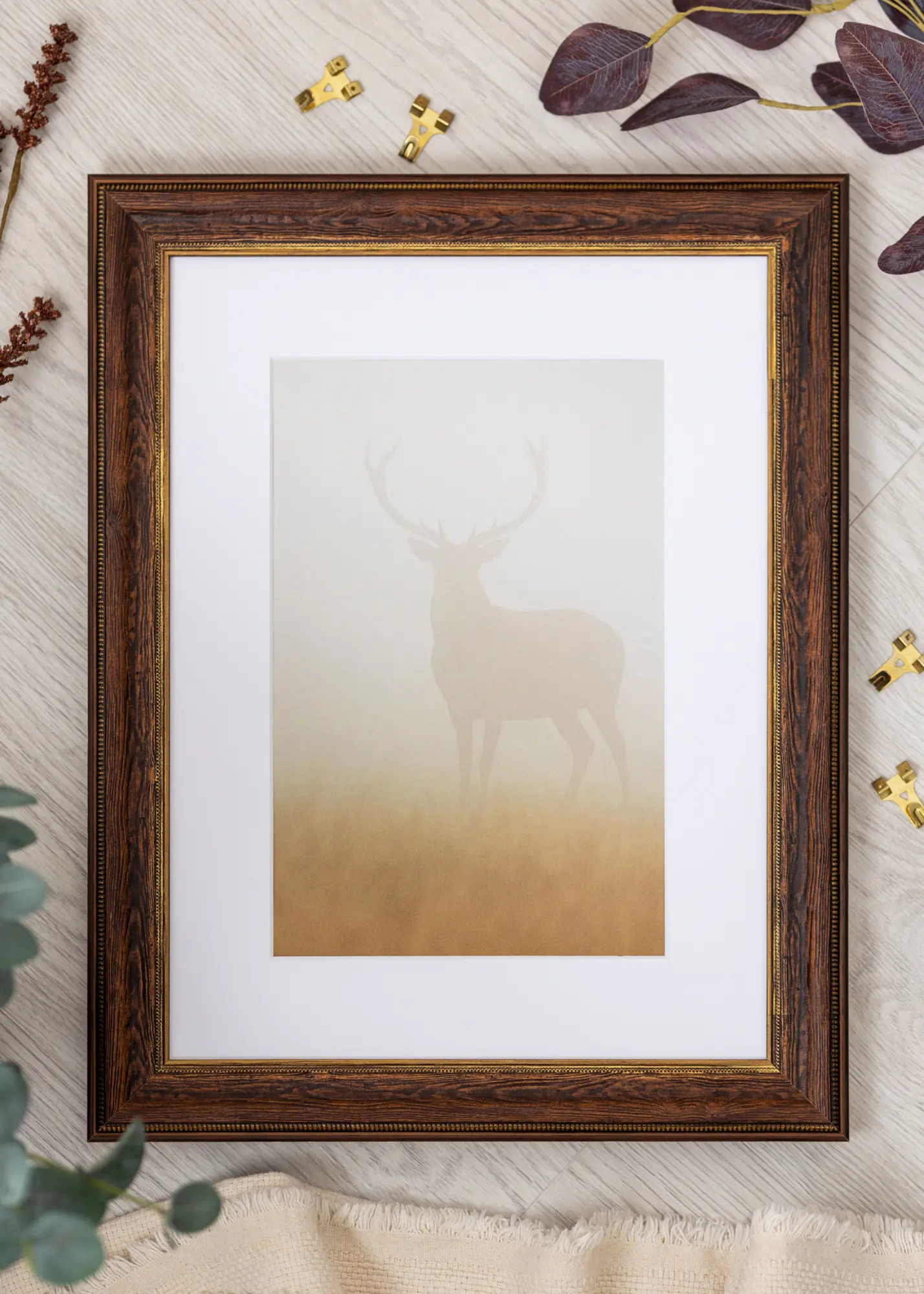 Αυτή η κομψή κορνίζα φωτογραφίας με διαστάσεις 40x60 εκ. είναι ένας τέλειος συνδυασμός ρουστίκ γοητείας και κλασικής κομψότητας. Κατασκευασμένη από υψηλής ποιότητας ξύλο, η κορνίζα έχει ένα βαθύ και ζεστό καφέ χρώμα που αναδεικνύει τη φυσική υφή του ξύλου. Οι διακοσμητικές χρυσές λεπτομέρειες κατά μήκος της εσωτερικής άκρης προσθέτουν μια σοφιστικέ πινελιά που συμπληρώνει και τις παραδοσιακές και τις vintage εμπνευσμένες διακοσμήσεις.