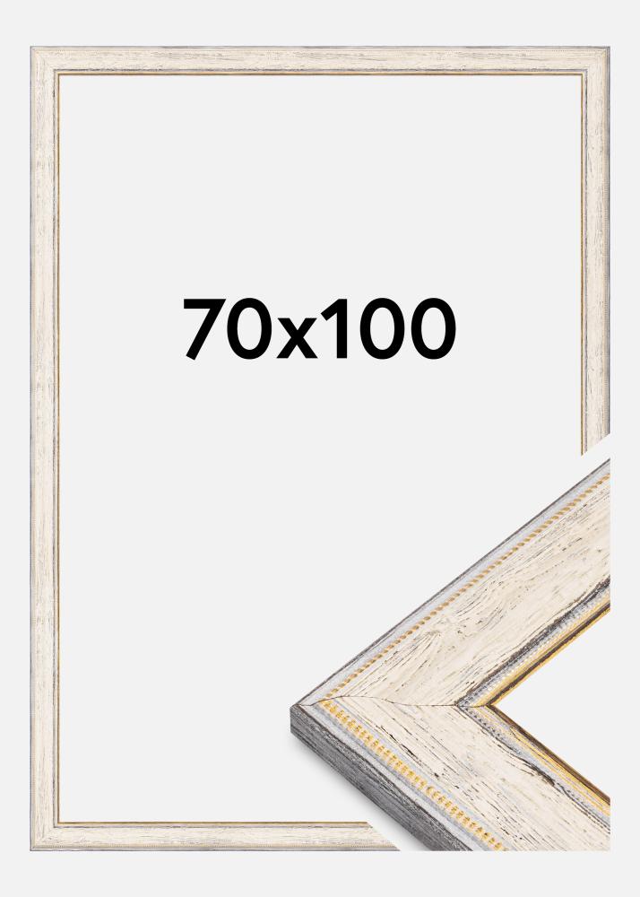 Αυτή η όμορφη κορνίζα είναι ένας τέλειος συνδυασμός vintage έμπνευσης και σύγχρονης κομψότητας. Με το ρουστίκ λευκό και γκρι ξύλινο φινίρισμά της, συμπληρωμένο με διακριτικές χρυσές λεπτομέρειες κατά μήκος της εσωτερικής άκρης, προσφέρει μια γοητευτικά παλαιωμένη εμφάνιση. Η κορνίζα είναι σχεδιασμένη για να ταιριάζει σε μοτίβα μεγέθους 70x100 εκ., καθιστώντας την ιδανική για να αναδείξει τις αγαπημένες σας φωτογραφίες ή έργα τέχνης με μια διαχρονική και εκλεπτυσμένη αίσθηση.