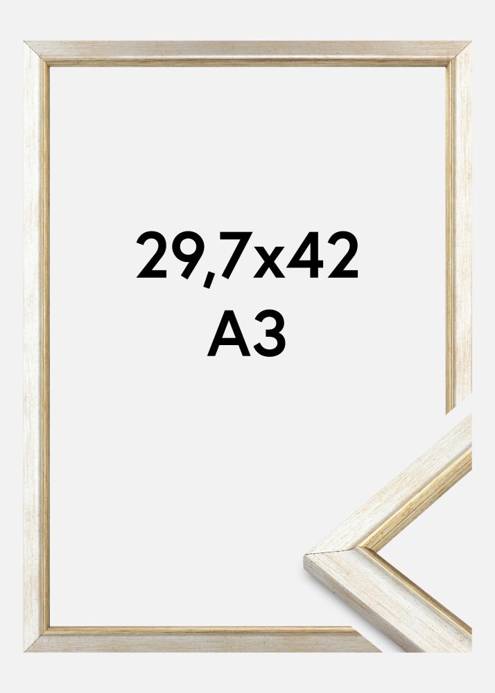 Αυτή η κομψή κορνίζα σε ασημί χρώμα είναι ένας τέλειος συνδυασμός μοντέρνου σχεδιασμού και κλασικής γοητείας. Με το διακριτικό βουρτσισμένο φινίρισμά του, προσδίδει μια σοφιστικέ πινελιά στις φωτογραφίες και τα έργα τέχνης σας. Η κορνίζα είναι κατασκευασμένη από ξύλο και έχει μια λωρίδα πλαισίου πλάτους 19 χιλιοστών και βάθος 15 χιλιοστών, που προσδίδει αίσθηση σταθερότητας και ανθεκτικότητας. Αυτή η κορνίζα είναι ιδανική για εικόνες μεγέθους 29,7x42 cm (A3), καθιστώντας την ιδανική για να εμφανίσετε τις αγαπημένες σας φωτογραφίες ή έργα τέχνης.