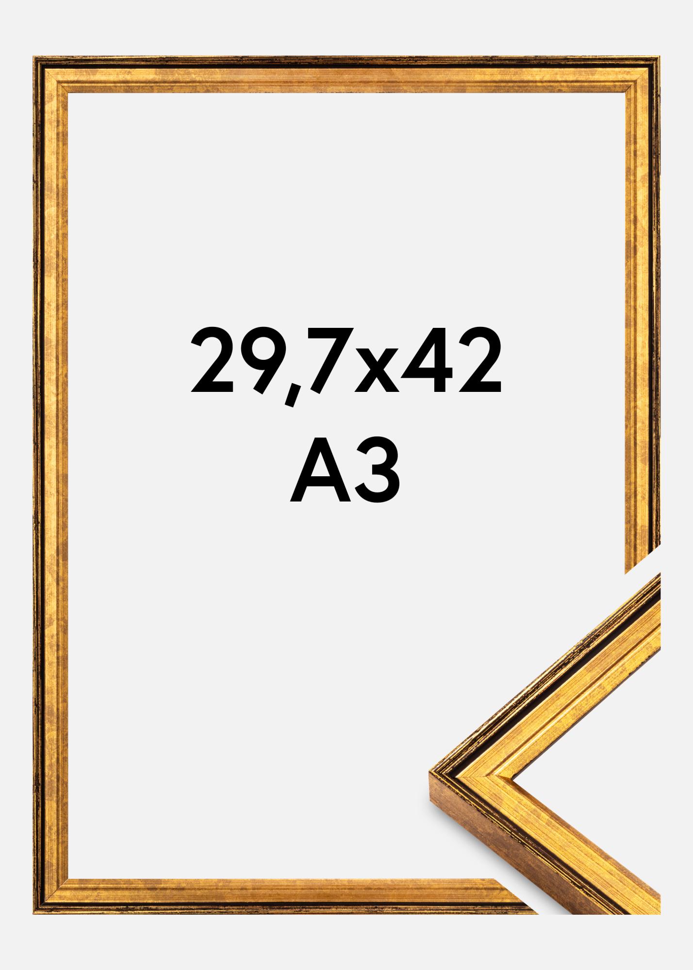 Ψάχνετε για μια κορνίζα που συνδυάζει κλασική κομψότητα με σύγχρονη λειτουργικότητα; Αυτή η χρυσή κορνίζα είναι ακριβώς αυτό που χρειάζεστε. Με διαστάσεις 29,7x42 εκ. (A3), είναι τέλεια για να αναδείξετε τα αγαπημένα σας θέματα. Η κορνίζα είναι κατασκευασμένη από υψηλής ποιότητας ξύλο και διαθέτει μια 18 χιλ. φαρδιά λίστα πλαισίου που προσφέρει μια γερή και κομψή κορνίζα.